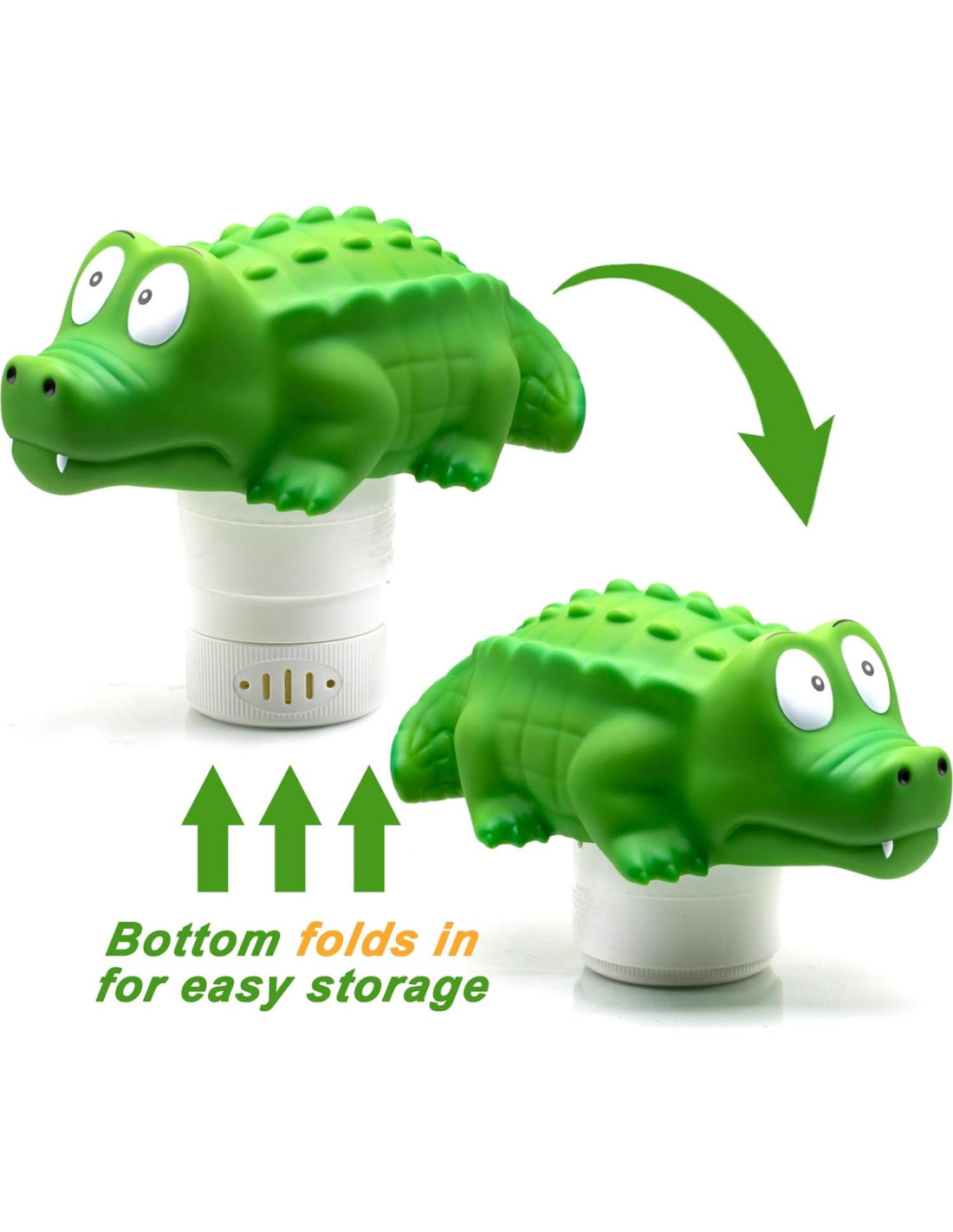 ¿Cansado del dispensador feo y común y necesitas una forma adorable de mantener tu piscina enterrada o sobre el suelo adecuadamente clorada? ¡No busques más! El dispensador químico flotante de animales único de WWD Pool viene con una ventilación de flujo ajustable y acomoda tabletas de cloro de 3 pulgadas hasta 4 piezas a la vez. Nuestro soporte de cloro está hecho de PP en la parte superior y plástico ABS, lo que puede evitar perfectamente que las tabletas se corroen, rompan o se desvanezcan debido a la alta temperatura de la luz solar. Tiene un cuerpo transparente para que siempre puedas ver cuántas tabletas quedan y con el diseño de ventilación de flujo ajustable, ¡incluso puedes controlar qué tan pronto se está utilizando tu cloro al girar la parte inferior! ¿Qué hace que el Soporte Químico Flotante de Animales WWD Pool sea tan diferente? Diseño de dispensador de cocodrilo lindo Estilo único añadido a tu piscina. El plástico PP y ABS hace que nuestros productos sean duraderos y de larga duración. Nuestro producto también tiene un soporte ajustable y este diseño puede ayudar a liberar la cantidad justa de cloro con el tiempo mientras la unidad flota. ¡La mejor opción para tu verano!