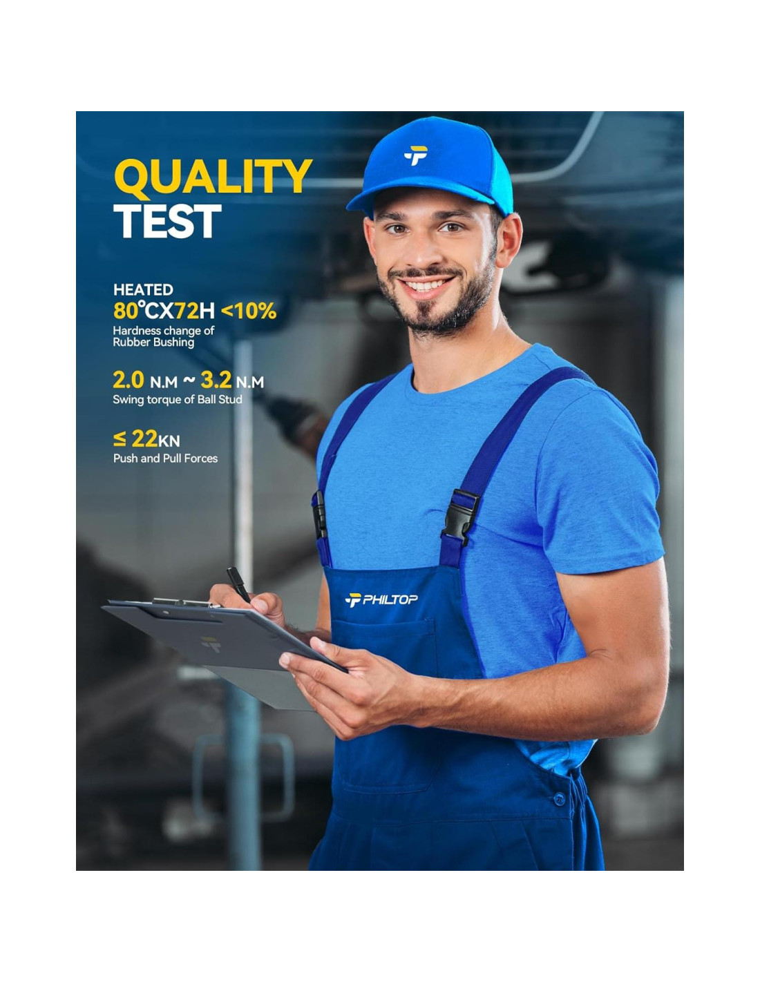 - Diseño Duradero: Los Brazos de Control PHILTOP están hechos de material de alta calidad que cumple o supera el estándar OEM. Aseguran un rendimiento duradero, reduciendo la necesidad de reemplazos frecuentes. Esto no solo ahorra dinero en costos de mantenimiento, sino que también proporciona tranquilidad, sabiendo que el manejo y la seguridad de su vehículo están respaldados por componentes confiables y duraderos.