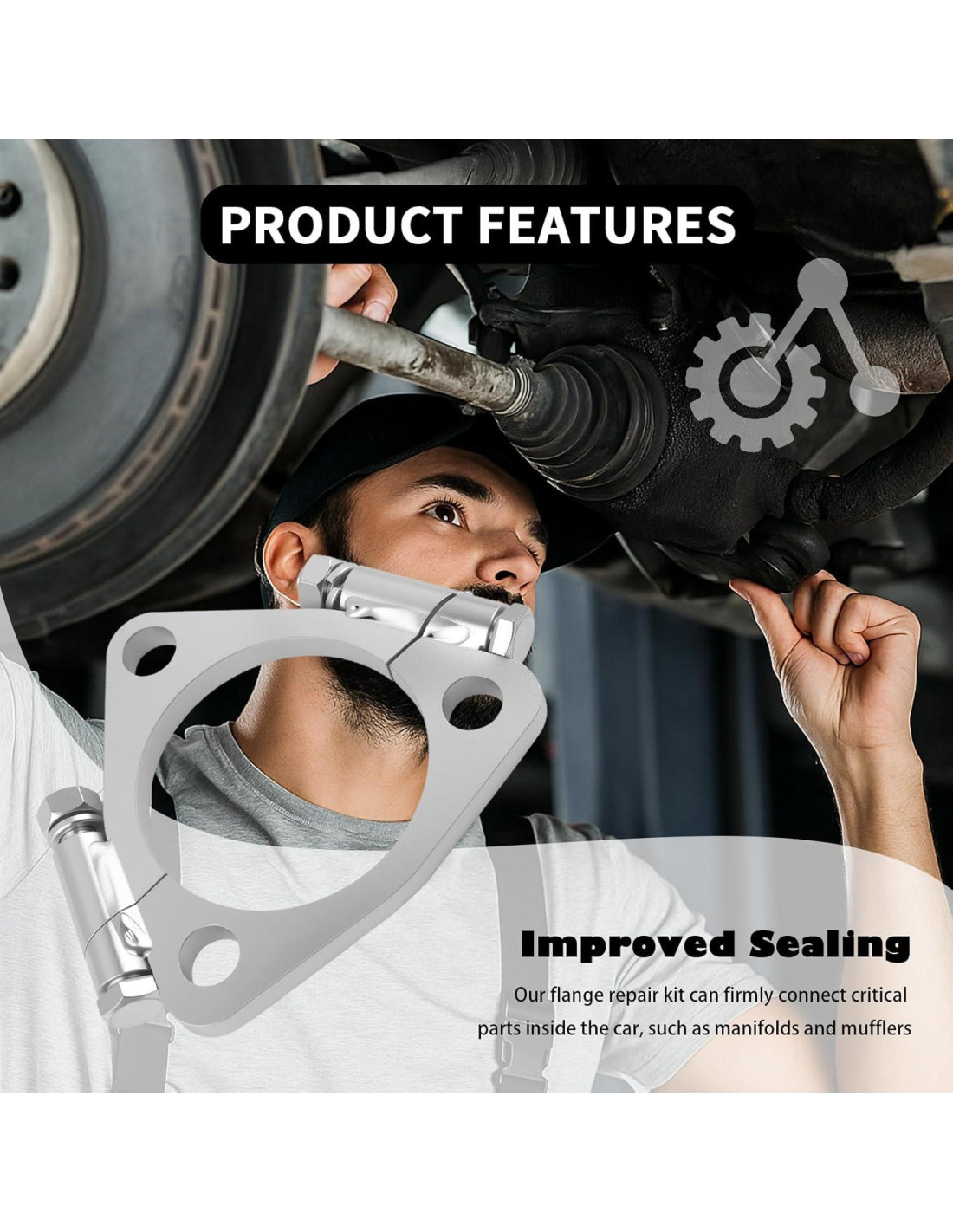 BRIDA DE ESCAPE DIVIDIDA PARA AUTOMÓVILES, NO SE REQUIERE SOLDADURA, INSTALACIÓN FÁCIL Atributos del Producto Colores: Plateado Tamaños: ID de la Brida: 2.5 pulgadas (6.35 cm) Grosor de la Brida: 0.31 pulgadas (0.79 cm) Longitud Total de la Brida: 4.86 pulgadas (12.34 cm) Ancho de la Brida: 3.81 pulgadas (9.66 cm) Diámetro del Orificio para Tornillo: 0.49 pulgadas (1.24 cm) Distancia entre los Centros de los Dos Orificios para Tornillo: 2.94 pulgadas (7.47 cm) Peso: 10.08 oz (0.29 kg) Material: Acero al Carbono Galvanizado Empaque: Brida de Escape para Automóvil*1 (2 Partes Separadas), Tornillos*2, Tuercas*2, Arandelas*2 Funciones y Características del Producto 1. Tenga en cuenta que la información de tamaño es muy importante, antes de comprar, verifique cuidadosamente la información de tamaño de nuestro producto, si es lo que necesita 2. Nuestra brida de escape para automóviles le permite usarla sin soldadura, porque adopta un diseño dividido, lo que facilita la instalación incluso para personas comunes sin experiencia profesional en mantenimiento 3. El material de acero al carbono galvanizado como material principal de la brida dividida para automóviles le da a la brida la resistencia para soportar la presión y ralentizar la tasa de oxidación, lo que durará mucho tiempo