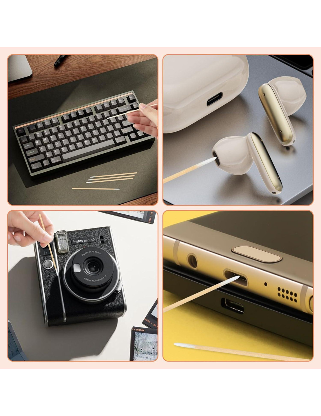 - Amplia Aplicación: Estos bastoncillos de algodón de punta de precisión con palito de madera no solo son buenos para el maquillaje, sino también para la limpieza diaria, como lentes de cámara, teclado, puerto del teléfono, electrónica, auriculares y lugares pequeños.