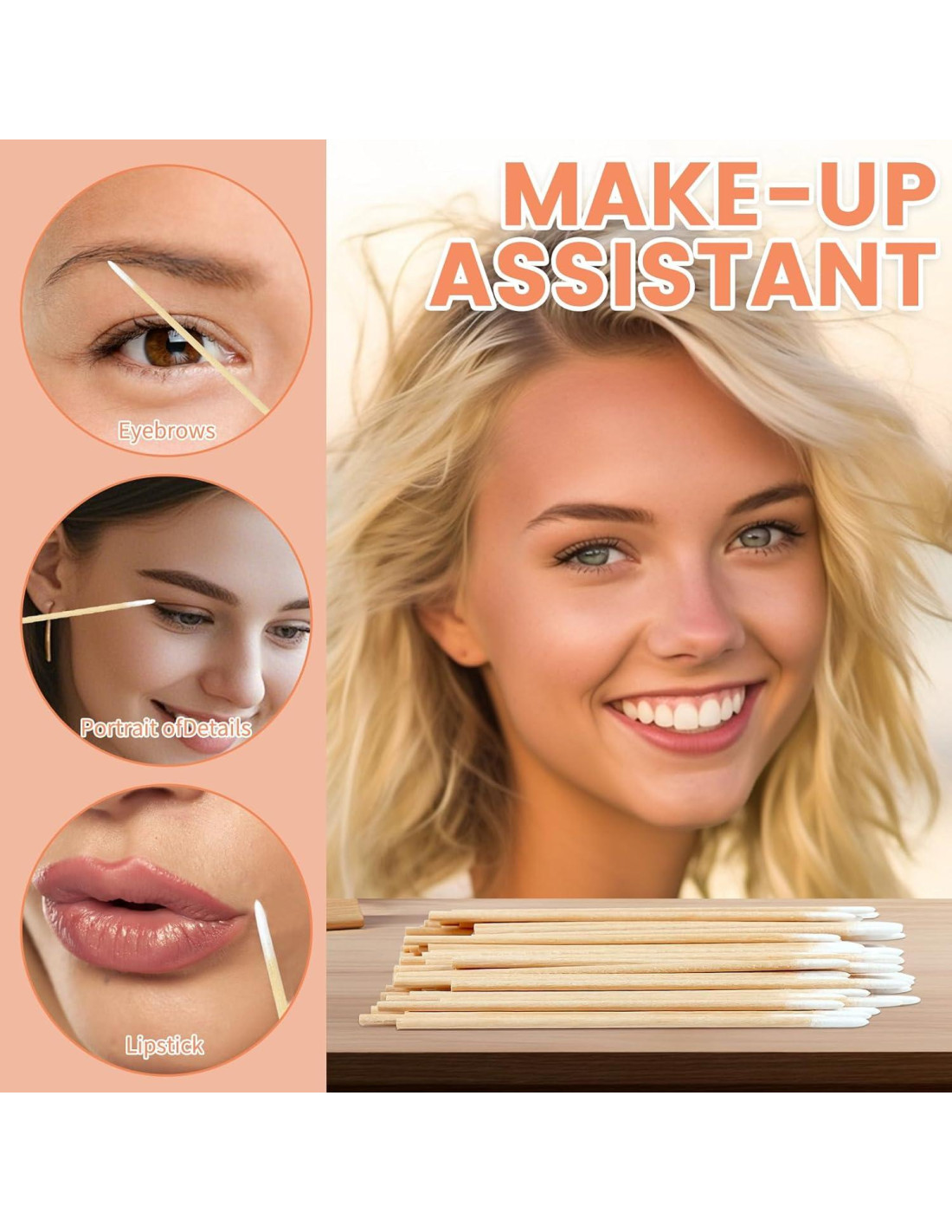 - Asistente de Maquillaje: Nuestros bastoncillos de algodón micro se utilizan principalmente para eliminar el exceso de lápiz de ojos, lápiz labial, cejas, sombra de ojos y cosméticos. Usados como bastoncillos de algodón para maquillaje para eliminar pequeños detalles que no necesita.