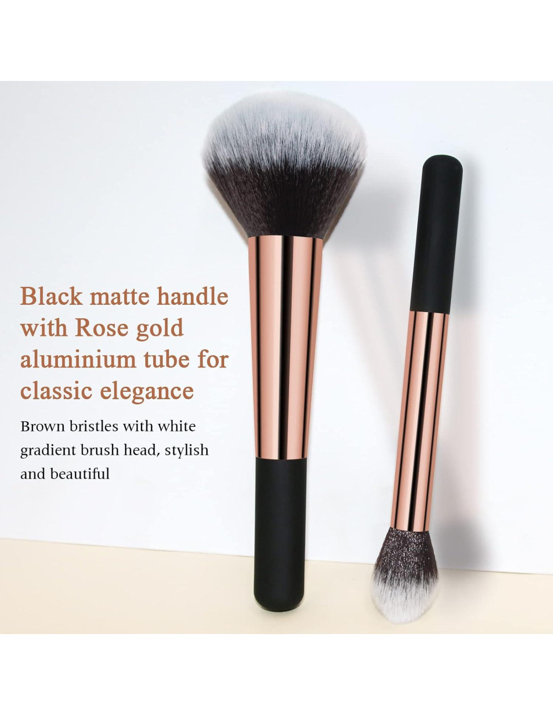 - DISEÑO MODERNO - Las brochas de rubor tienen mangos pulidos mate, lo que te permite sostenerlas fácilmente. Diseño de tubo de aluminio en color rosa dorado engrosado, moda y elegancia. Limpiar regularmente aumentará la vida útil de tu brocha de polvo base. (no usar agua caliente para lavarla)
