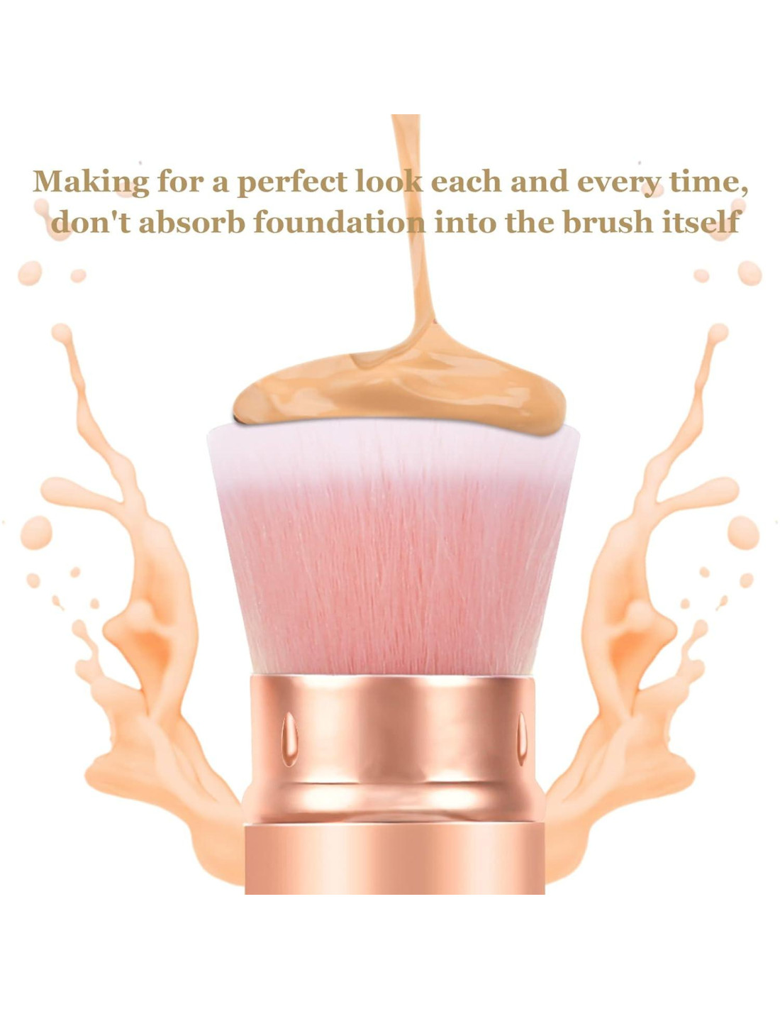- [Cerdas Suaves y Sedosas] La brocha de fundación kabuki hecha con fibras sintéticas de alta calidad, super suave, perfecta para mezclar base líquida, protector solar, rubor, crema, bronceador, difuminar, aplicar, corrector, cosméticos en polvo sueltos o polvo de uñas. Te permite aplicar productos para un acabado perfecto, ligero y de cobertura total, no absorbe la base en la brocha misma.