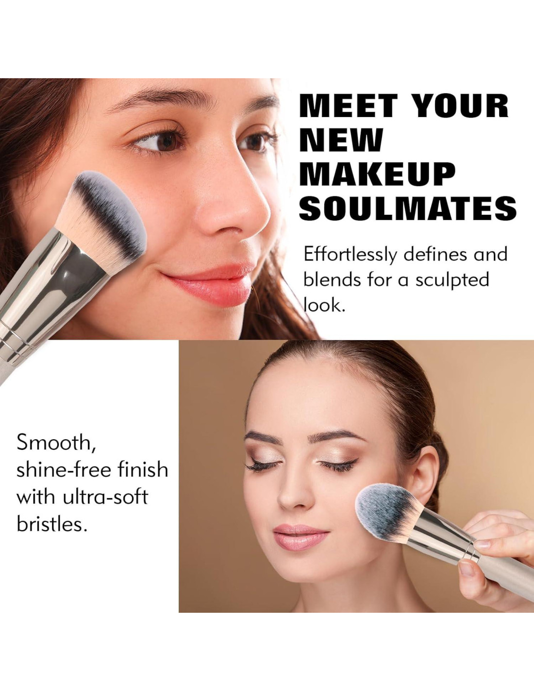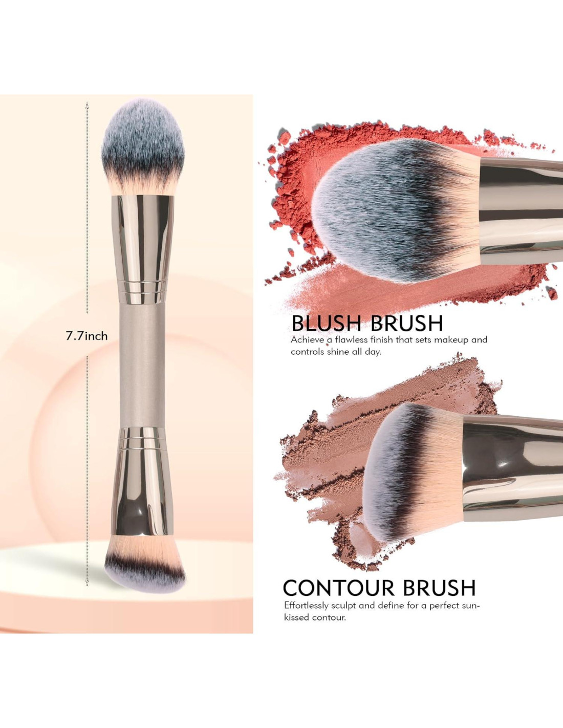 - [Doble Cara para Aplicación Versátil] Diseñada para versatilidad, esta brocha de doble cara tiene una cabeza redonda para difuminar el polvo a la perfección y una cabeza inclinada para la aplicación de base líquida. Son dos brochas en una, atendiendo todas tus necesidades de maquillaje base.