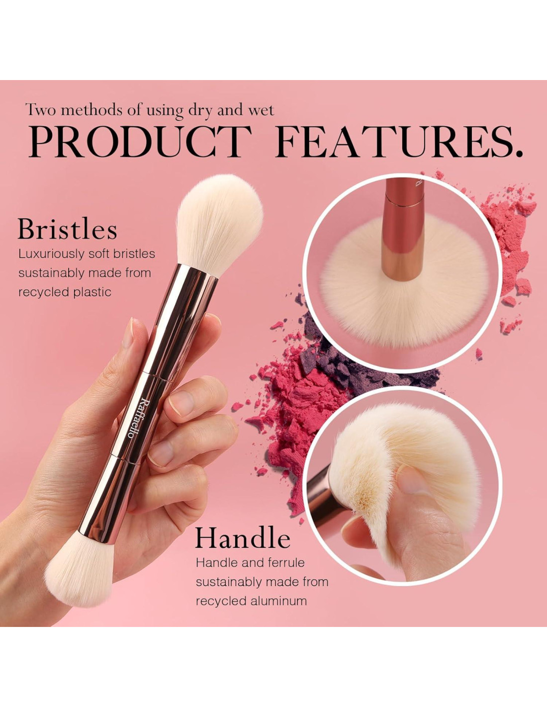 - Diseño Único: Hecho con materiales reciclados, el diseño de brocha de doble punta combina sostenibilidad, versatilidad y conveniencia en una sola herramienta. Esta elección sostenible ahorra espacio y simplifica tu rutina. Ideal para viajes o retoques rápidos, proporciona todas las brochas esenciales para un look completo en la mitad del espacio.