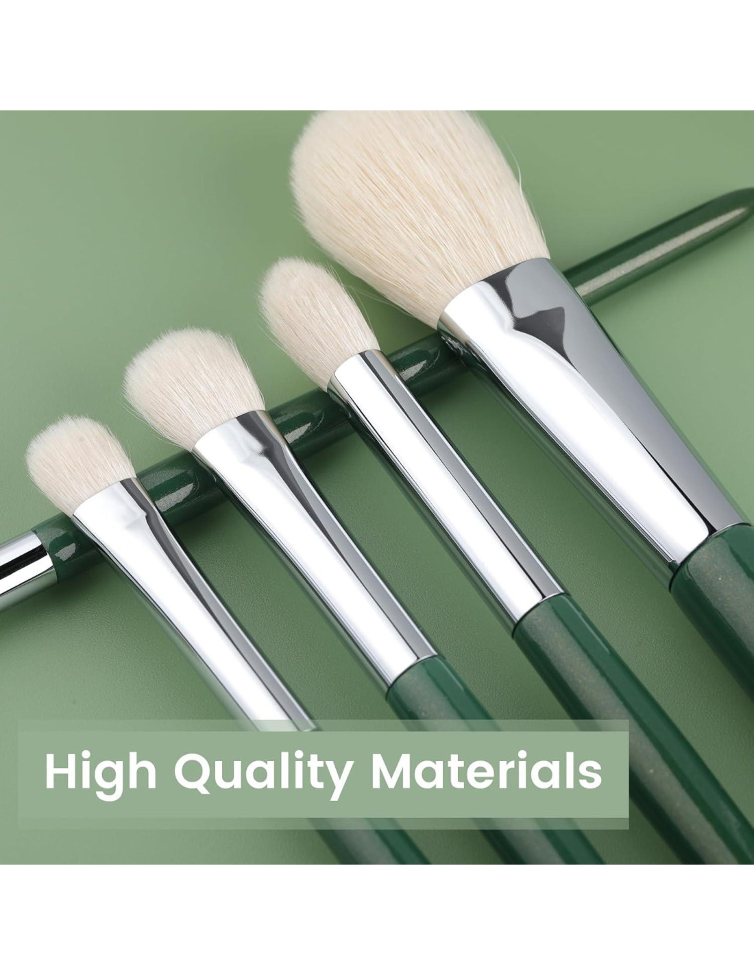 - [Durabilidad y Calidad Robusta y 100% Hecho a Mano] Nuestro juego de pinceles de maquillaje de pelo natural de viaje está diseñado con cerdas suaves y cómodas, proporcionando una experiencia de maquillaje suave y agradable, haciendo que tu rutina de maquillaje sea fácil y placentera. La combinación de verde y blanco hace que todos se sientan felices, frescos y más limpios.