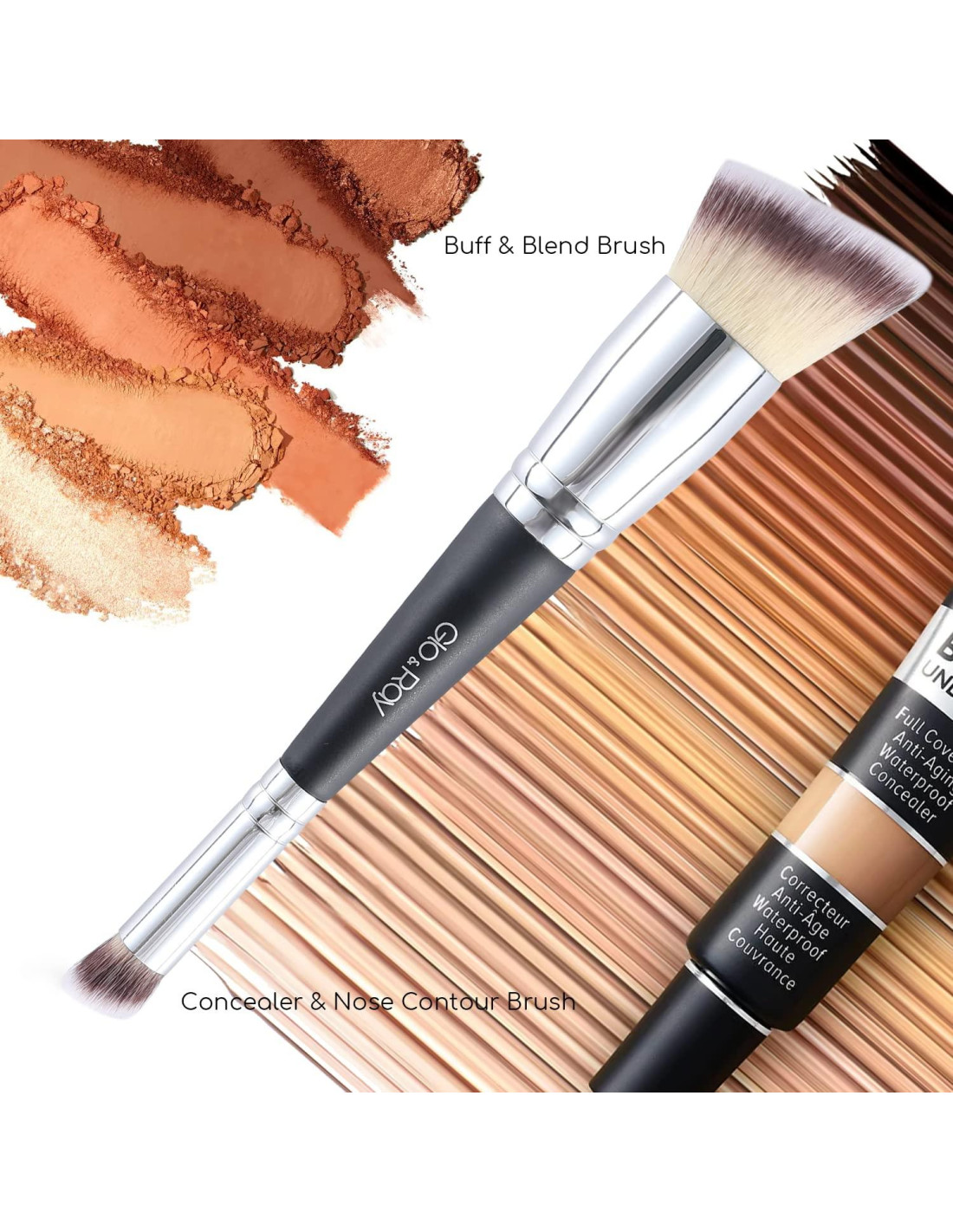 - Aplicación Precisa: La brocha angulada para base aplica y mezcla la base sin esfuerzo para un acabado suave y sin rayas, mientras que la brocha angulada para corrector se dirige a áreas de difícil acceso como debajo de los ojos y alrededor de la nariz. Perfecta para lograr un look esculpido y bien definido con aplicación precisa.