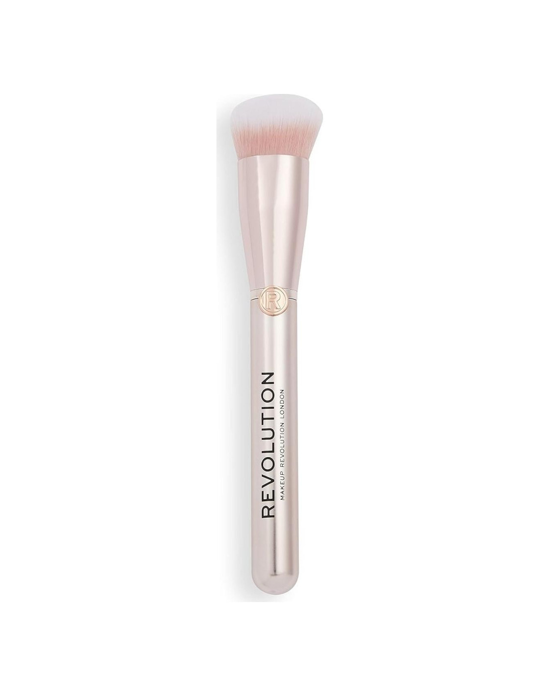 Brocha de Fundación Angulada de Makeup Revolution (R8). POR QUÉ TE ENCANTARÁ: Las cerdas densas y cortas de la brocha la hacen ideal para aplicar base líquida o en crema. El acabado angulado permite que la brocha se adapte mejor a las curvas de la cara y proporciona más control al aplicar en áreas más pequeñas. Vegano y Libre de Crueldad.