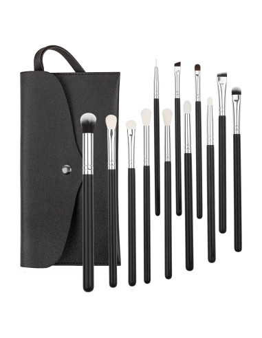 - JUEGO COMPLETO: colección de brochas de maquillaje profesional de 12 piezas con brochas de precisión con mangos negros y virolas plateadas, incluye bolsa de almacenamiento conveniente