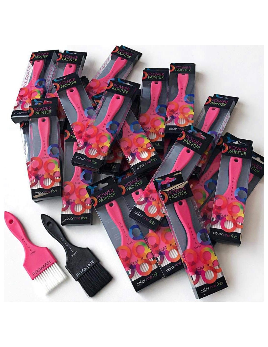 Los Power Painters de Framar son la brocha definitiva para balayage y mezcla de color de cabello. Las brochas cuentan con un mango ergonómico resistente que es fácil para la mano y la muñeca incluso durante largas aplicaciones. Este paquete de 2 brochas para colorear cabello se inspiró en brochas de pintura y son la adición perfecta para el kit de cada colorista de cabello. Genial para pintar decolorante en el cabello a mano alzada, mezclar, hacer back stroking, técnicas de foiling y balayage. Las brochas cuentan con cerdas AccuSoft que son la combinación perfecta de suaves y rígidas. Pinta grandes secciones de cabello a la vez, ahorrándote tiempo en las aplicaciones de color mientras aún creas dimensión. Los Power Painters son geniales tanto para principiantes como para profesionales. Cómo comenzamos: La fundadora Maria Gallo vio una oportunidad que introduciría papel de aluminio para cabello en salones de todo Canadá. Asociándose con su esposo, Frank, la pareja se aventuró a salones en su provincia natal de Ontario, Canadá, tocando puertas, educando a los estilistas sobre el futuro del color de cabello. Atrapados por desafíos y rechazados repetidamente por los dueños de salones, el dúo miró hacia la distribución, y así nació Framar. Maria se convirtió en especialista en ventas por teléfono, trabajando con una red que presentó a Framar a estilistas de todo el país, todo sin haber conocido físicamente a ninguno de sus clientes, muchos de los cuales siguen siendo una parte importante de Framar, 35 años después. Qué hace únicos a nuestros productos: Érase una vez, los accesorios para teñir el cabello no eran más que una nota al pie en la industria de la belleza profesional. Algo que todos necesitaban, pero que nadie obsesionaba, hasta que Framar llegó al mercado. Los productos de Framar se fabrican con un estándar superior y están diseñados para honrar el espíritu del estilista y inspirar la creatividad que encarna su oficio. ¿Por qué amamos lo que hacemos? Para los no iniciados, puede que no parezca que los colores audaces y los diseños de moda importen mucho cuando se trata de crear herramientas y accesorios profesionales para el cabello, pero está entrelazado en nuestro ADN. La comunidad de estilistas con la que interactuamos a diario nos proporciona la inspiración para seguir innovando, y el entusiasmo que comparten por lo que creamos nos da el combustible para mantenernos motivados. Cuando es tu vocación convertir herramientas ordinarias en algo que puede hacer sonreír a otra persona, es fácil amar lo que haces.