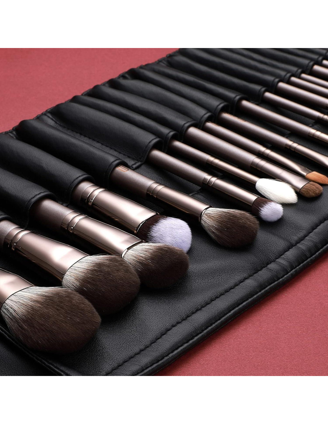 - Durabilidad de alta resistencia a un precio asequible. Las cerdas de este kit de brochas de maquillaje se fabrican utilizando una tecnología de empaquetado de fibra densa que no solo asegura una aplicación de maquillaje rápida, efectiva y suave, sino que también detiene la caída de las cerdas. Ya no tienes que preocuparte por que tu brocha se desgaste después de solo unos pocos usos.