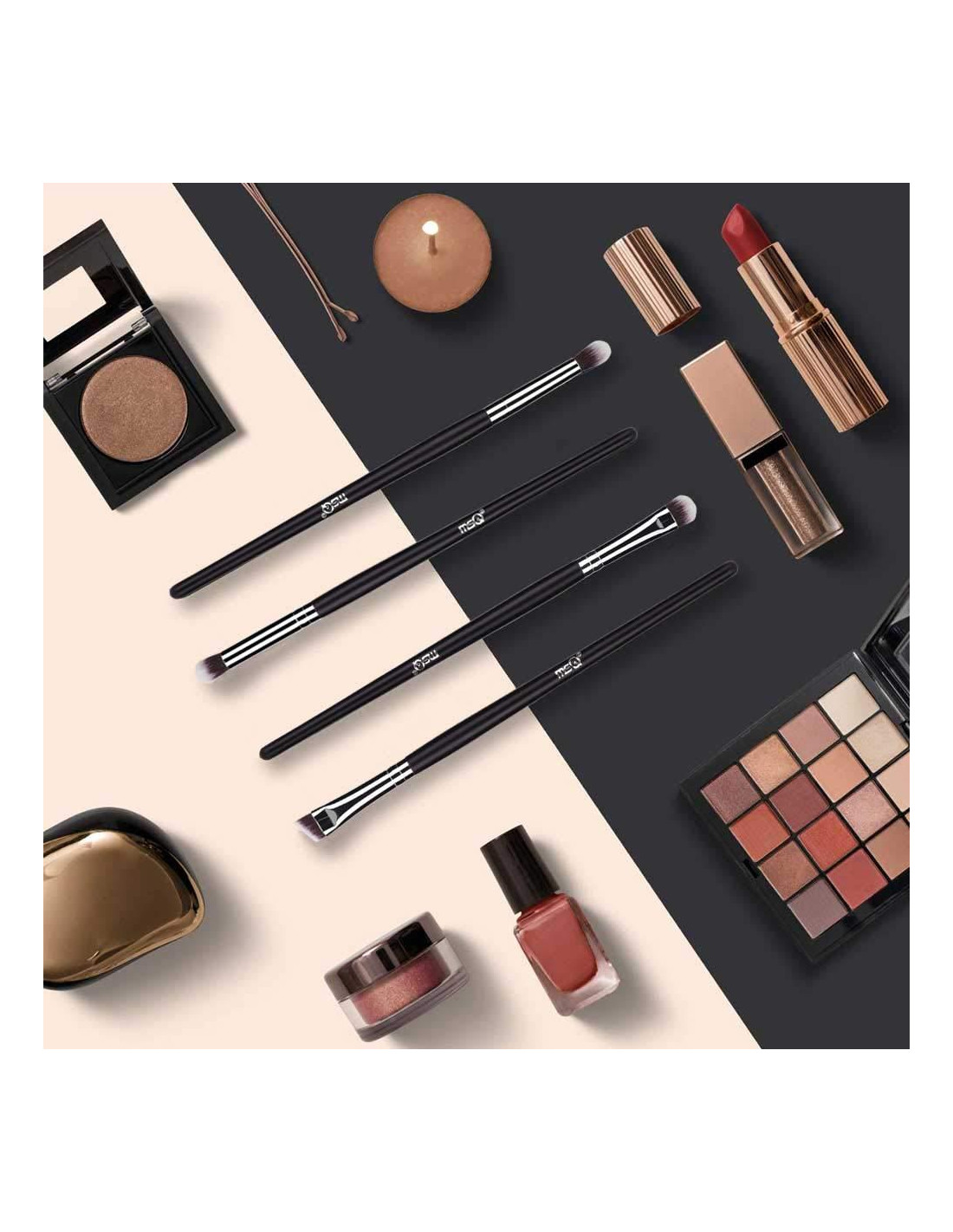 - JUEGO DE BROCHAS DE MAQUILLAJE PARA OJOS: Incluye brochas para sombra de ojos, brochas de difuminado, brocha para cejas y brochas para iluminador. Con 4 brochas simples se puede lograr un maquillaje de ojos perfecto