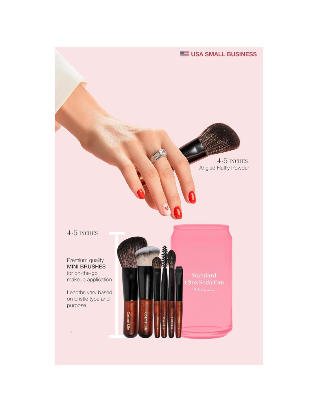 - MANGO CORTO, Tamaño de Brochas de Maquillaje MINI: ¡Perfecto para tu bolso, cartera o para llevar! 9 Brochas de Maquillaje de Viaje Profesionales y 1 Estuche para Brochas de Maquillaje