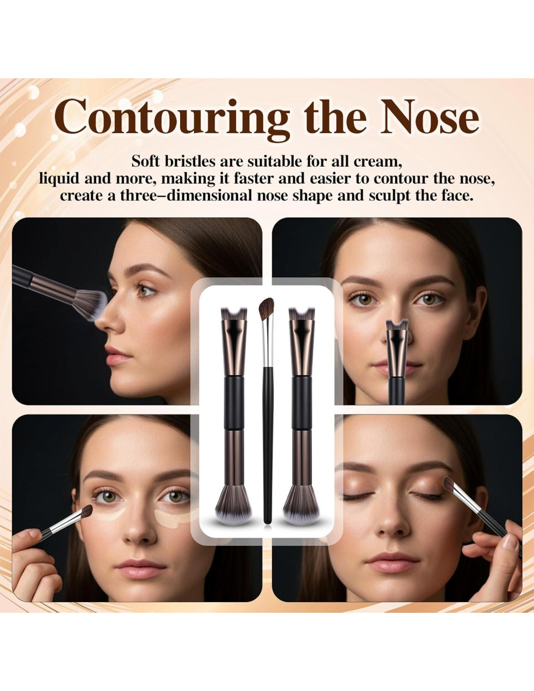 - [Multifuncional] Nuestro pincel de contorno de nariz 2-en-1 te permite obtener líneas precisas al delinear tu nariz, mientras que el extremo esponjoso del moldeador de nariz se utiliza para difuminar y suavizar el contorno de la nariz para que se vea más natural