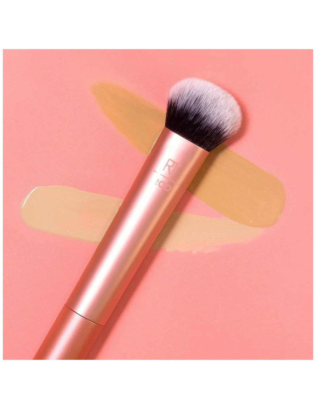 - La Brocha de Maquillaje para Rostro Experta de Real Techniques te ayuda a crear un acabado impecable con su gran forma abovedada para difuminar y mezclar el maquillaje líquido
