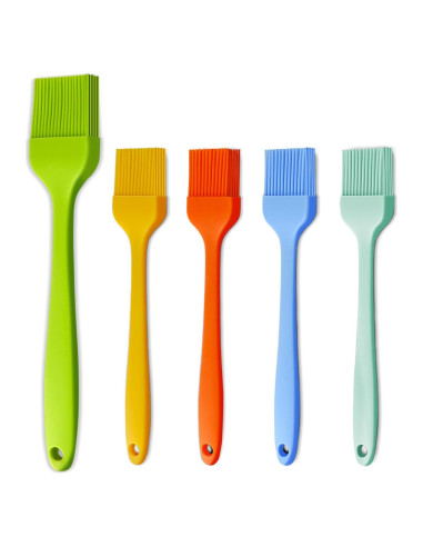 - [MULTIPROPÓSITOS Y SERVICIO POST-VENTA SATISFACTORIO] Usa 5 brochas de basting de colores para diferentes tareas y evita la contaminación cruzada. La brocha de pasteles grande con mango largo es excelente para asar a la parrilla, manteniendo tus manos alejadas del calor. El set de brochas para basting se puede usar para untar mantequilla derretida, aceite, mostaza, salsa en la cocina, horneado, barbacoa. Para cualquier consulta sobre nuestro set de 5 brochas para basting, no dudes en hacérnoslo saber. Siempre estamos aquí para ayudarte.