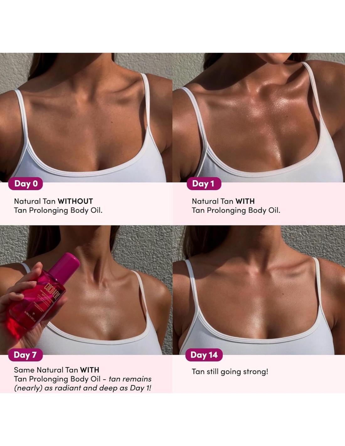 - PROLONGA LOS BRONCEADOS NATURALES HASTA 28 DÍAS. Extiende tu brillo dorado con nuestro lujoso Aceite Prolongador de Bronceado, diseñado para intensificar y realzar los bronceados naturales - por hasta 28 días. Potenciado por un péptido biomimético, esta fórmula nutritiva apoya la producción natural de melanina de tu piel para mantener ese aspecto fresco de vacaciones, por más tiempo.