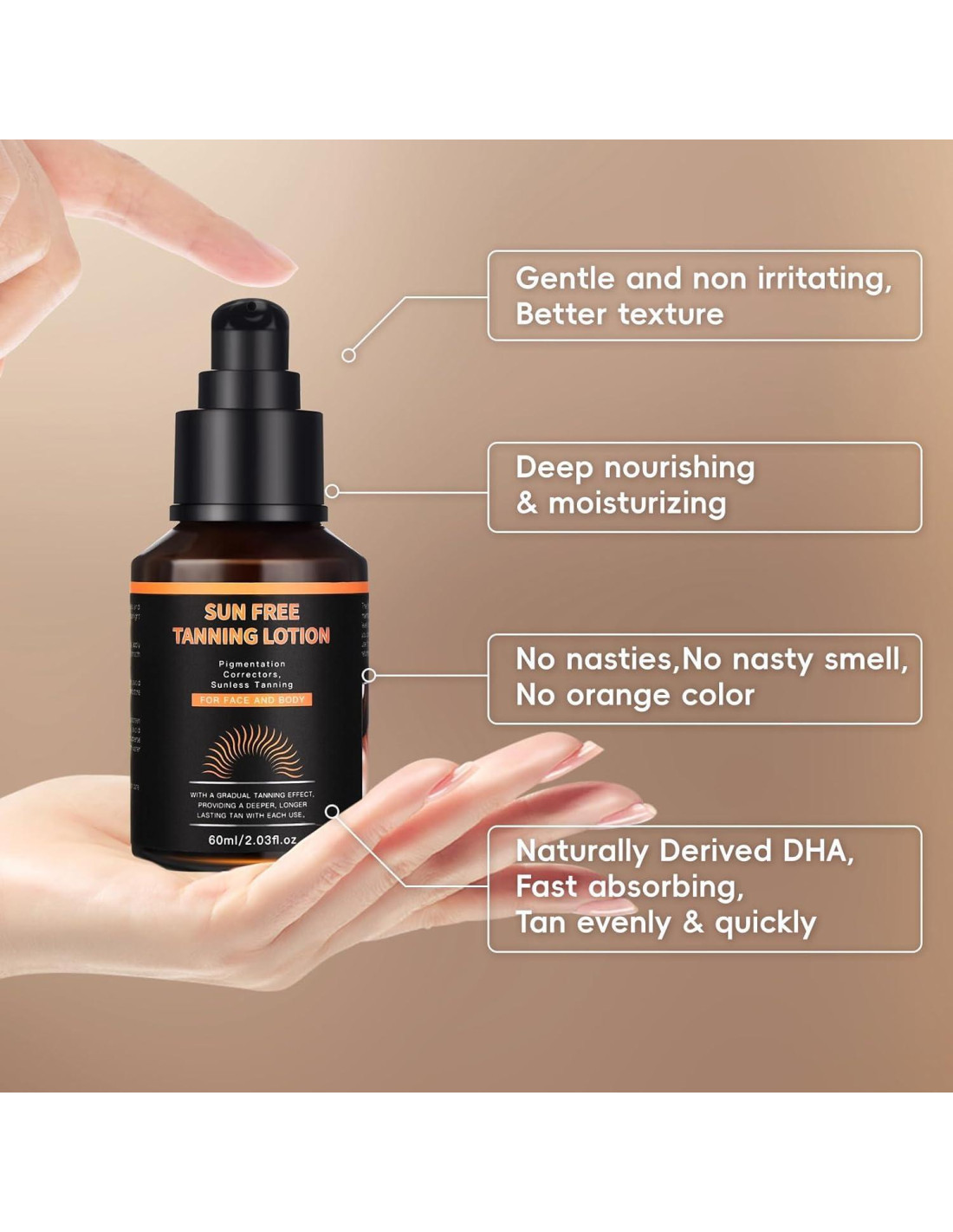 - Fórmula Segura para Cara y Cuerpo Diseñada para piel sensible, este bronceador facial y loción corporal utiliza Dihidroxiacetona (DHA) para crear un bronceado gradual y de aspecto natural. Propanodiol y Glicol Butileno aseguran hidratación ligera sin obstruir los poros.
