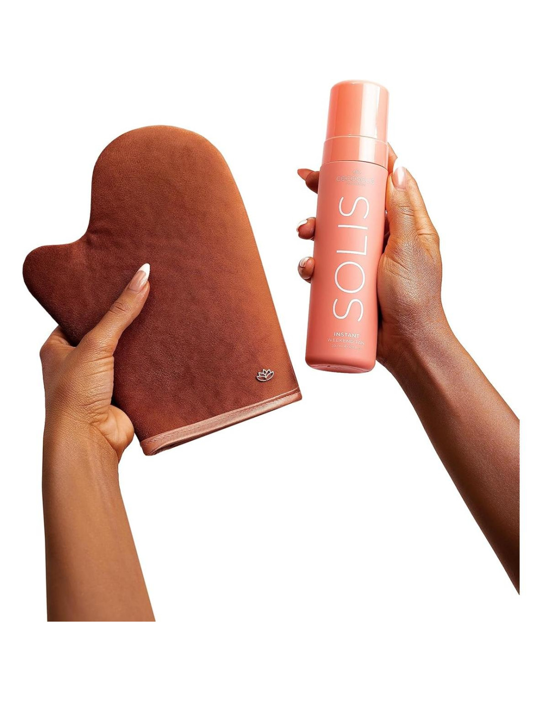 Espuma bronceadora instantánea natural. Obtén una piel bronceada impecable al instante y lávala cuando quieras. CÓMO USAR Para obtener los mejores resultados, exfolia la piel con un guante 24 horas antes de usar. Agita bien antes de usar, luego aplica sobre la piel limpia y seca. Usa un guante bronceador y mezcla en un movimiento circular hasta que se distribuya uniformemente por la piel. Termina aplicando cualquier exceso de espuma bronceadora del guante en las manos y pies. Espera 60 segundos antes de vestirte. ¡Disfruta de tu bronceado instantáneo! CONSEJOS ÚTILES Para obtener los mejores resultados, exfolia la piel con un guante 24 horas antes de usar. Inmediatamente antes de aplicar el producto, hidrata las áreas secas de los codos y las rodillas con una crema ligera en movimientos circulares. Esto evitará la acumulación del producto en estas áreas. Al aplicar el producto: para el bronceado más intenso y duradero, aplica 2 capas. Al usar el bronceado instantáneo por primera vez, recomendamos aplicar solo 1 capa para probar la fuerza y la intensidad del bronceado y determinar si necesitas 2 capas la próxima vez. Para el lavado más efectivo del bronceado instantáneo, usa un guante exfoliante en combinación con jabón o gel de ducha en la ducha. Si aplicas el bronceado instantáneo regularmente, recomendamos eliminar completamente el bronceado con un guante exfoliante antes de la próxima aplicación para evitar la acumulación desigual del producto. NOTA: Almacenar en un lugar fresco, oscuro y seco. Puede manchar la ropa clara. Solo para uso externo. Prueba de parche para alergias 24 horas antes de usar. Suspender el uso si ocurre irritación. No usar en piel dañada o rota. Evitar el contacto con los ojos. Este producto no contiene protector solar y no protege contra las quemaduras solares.
