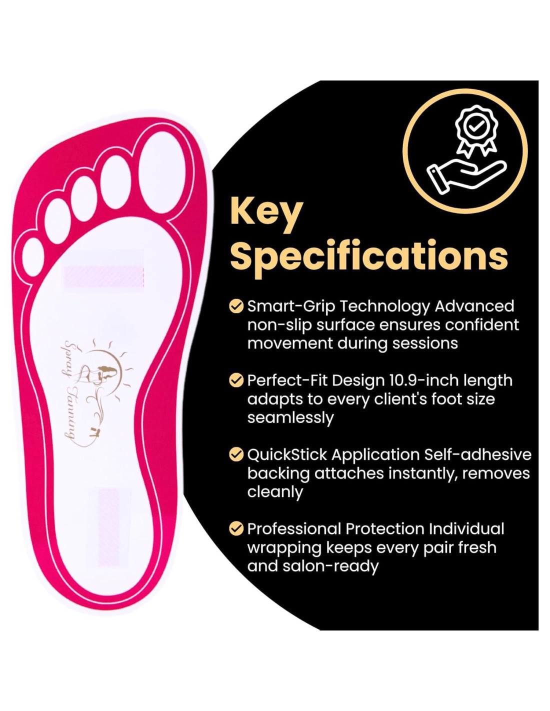 - Material de cartón: Las almohadillas están hechas de un material de cartón cómodo que es flexible y fácil de aplicar en las plantas de los pies. Debido a su adhesivo, los clientes también pueden caminar con ellas si lo desean, lo que las convierte en un reemplazo adecuado para las chanclas. Agregue este producto esencial a sus suministros desechables hoy y actualice instantáneamente el servicio de bronceado de su cliente.