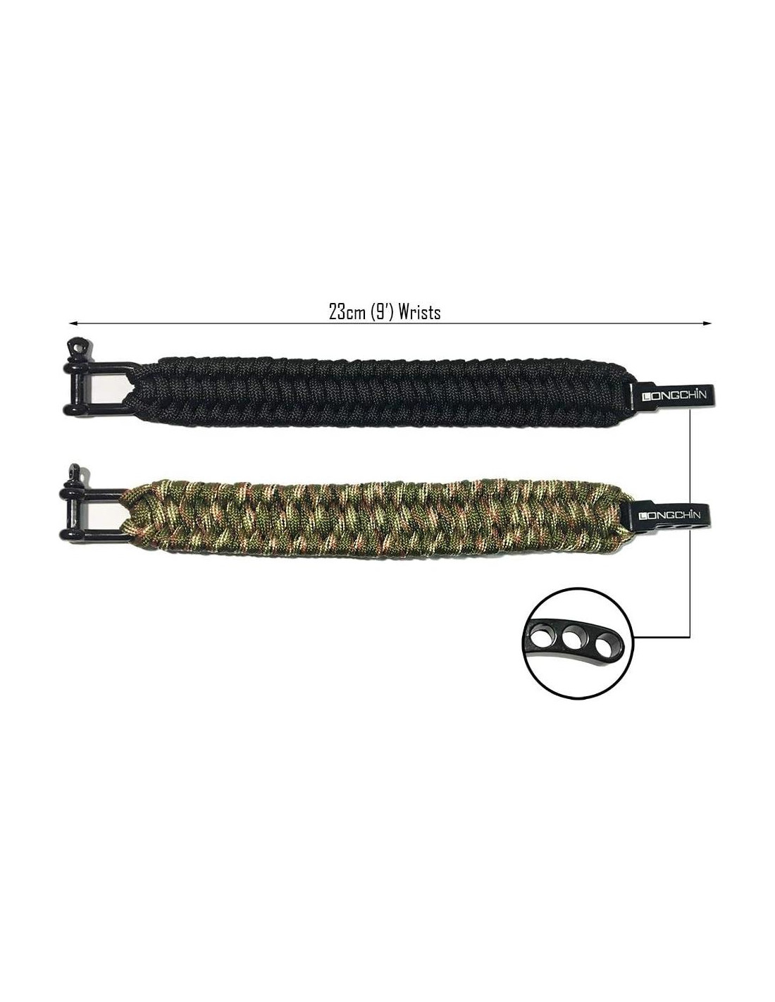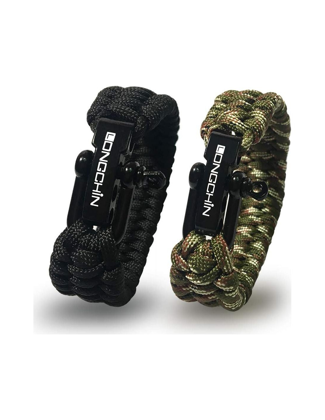 Pulsera de Supervivencia Paracord con Conexión de Grillete de Acero Inoxidable 3 Agujeros Longitud Ajustable para Senderismo Camping 2-Pack Dos Colores Negro+Camuflaje