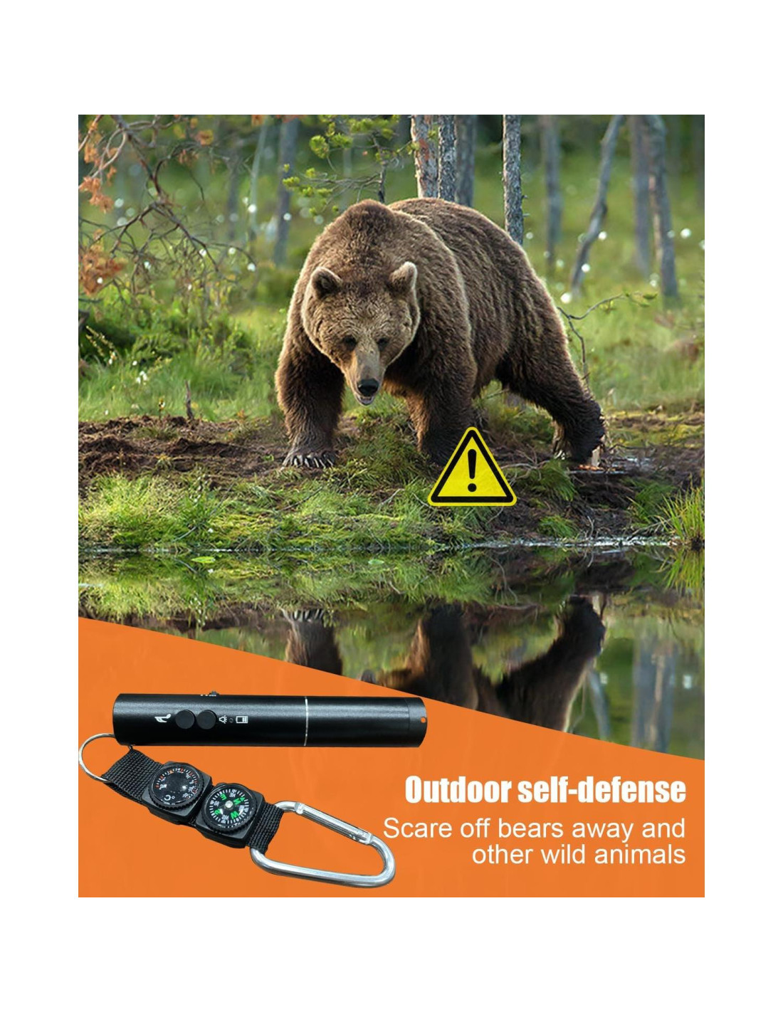 - Fácil de Usar: Solo presiona el botón para liberar un potente estallido de 120dB-150dB. Elige entre dos opciones de sonido-una bocina de animal aguda o un profundo rugido de oso-para manejar diferentes situaciones. Ideal para disuadir osos y otra fauna mientras exploras al aire libre.