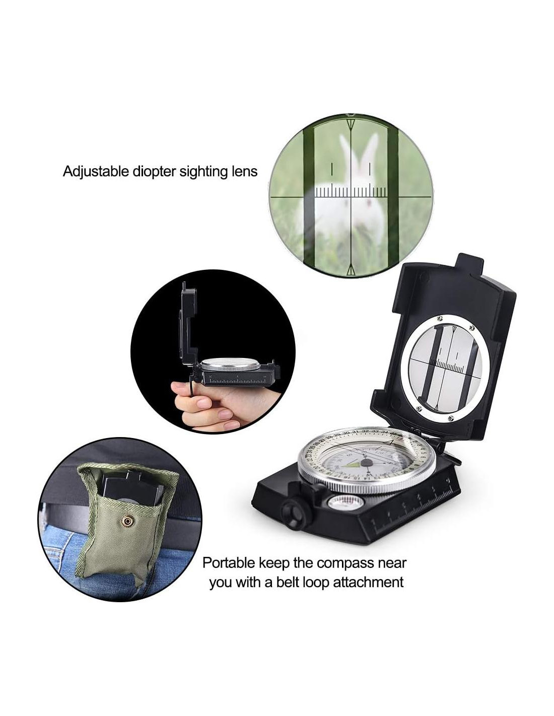- [Multifuncional y Portátil] Brújula de estilo militar tradicional diseñada en un compacto estuche de metal para máxima portabilidad; Cuerpo de metal resistente con tapa de metal plegable, esfera de brújula flotante con escala de 360, lente de prisma ajustable, telescopio de puntería. El estuche y la correa hacen que sea fácil de llevar. Absolutamente genial para entusiastas de actividades al aire libre.