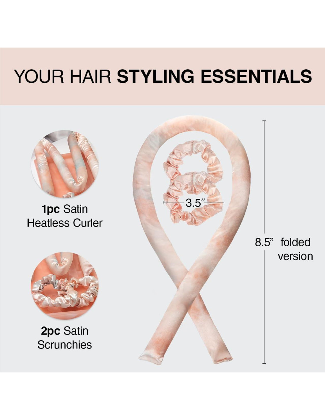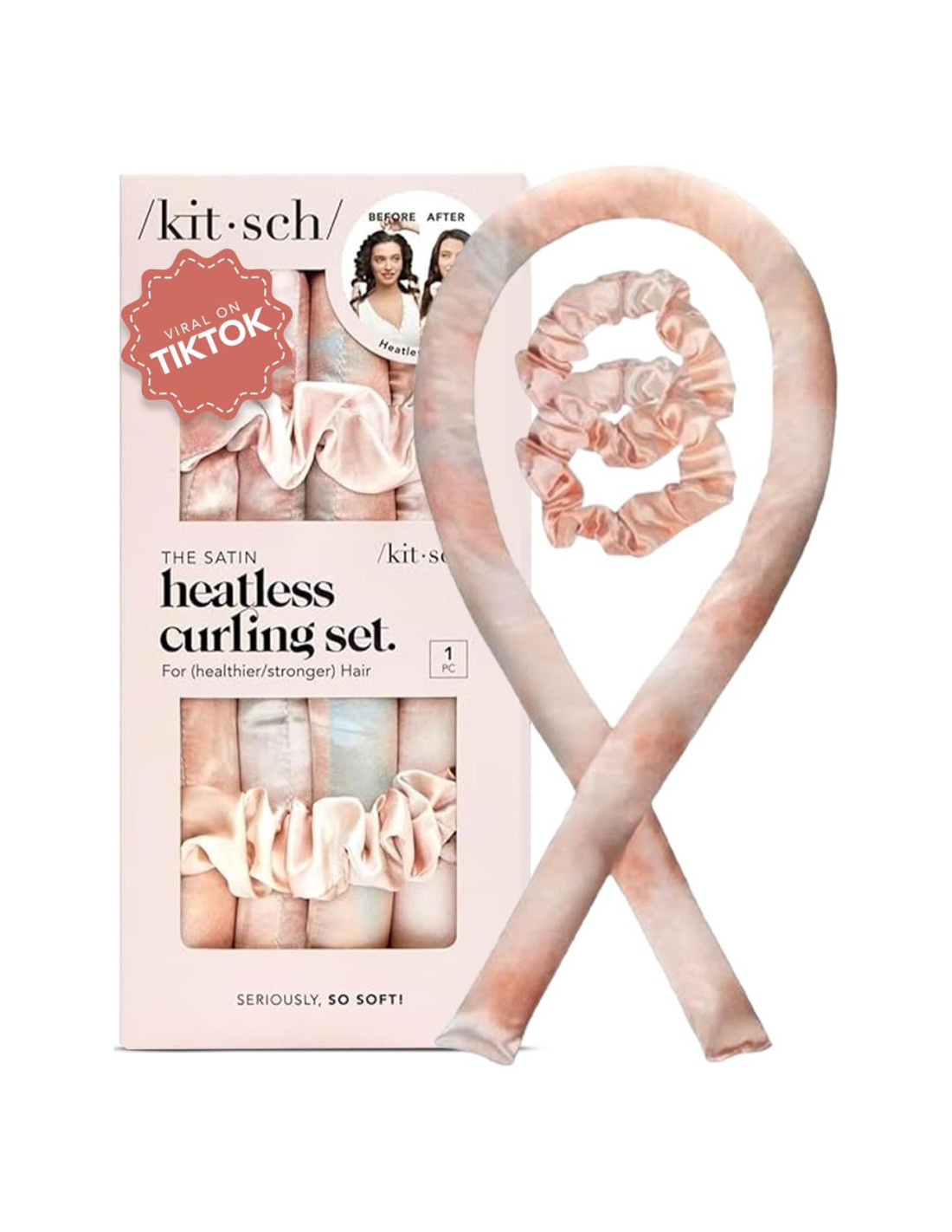- ADIÓS DAÑO AL CABELLO: Protege tu cabello del daño por calor con el Rizador de Cabello Kitsch para la Noche. Este conjunto incluye una varilla rizadora y dos scrunchies de satén, todo envuelto en tela de satén premium para mantener tu cabello suave y libre de frizz mientras creas hermosos rizos sin calor.