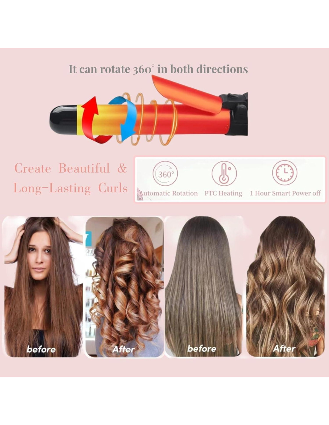 - CORDÓN GIRATORIO DE 363: Adecuado para todo tipo de cabello, proporcionando la temperatura óptima para mejores y más duraderos efectos de rizado. Varita de rizado rotativa recubierta con un recubrimiento de cerámica resistente a la corrosión que conduce rápidamente el calor uniforme y reduce el daño por calor, asegurando que tu cabello tenga ondas hermosas mientras se mantiene brillante.