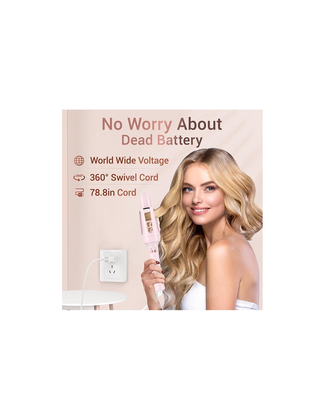 - 2 Varillas y 3 Temperaturas: Comparado con otros rizadores de cabello, nuestro rizador tiene 2 tamaños de varilla opcionales (2.54 cm/3.18 cm), 2 direcciones de rotación (Izquierda/Derecha) y 3 configuraciones de temperatura (165/190/210 C), que satisfacen mejor las diferentes necesidades para texturas de cabello y ocasiones.