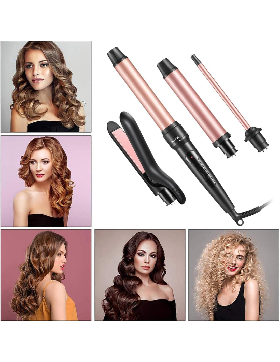 - Diseño para Todo Tipo de Cabello: Un mango se adapta a todos los accesorios desde rizos pequeños vintage hasta grandes rizos para cabello largo y grueso hasta ondas de playa glamorosas, facilitando y simplificando el cambio y logro de diferentes efectos de peinado con un solo conjunto de peinado. Cable de 2m de largo con rotación de 360 para operación libre y evitar enredos. Usa con el guante anti-calor al rizar para proteger tus dedos de quemaduras.