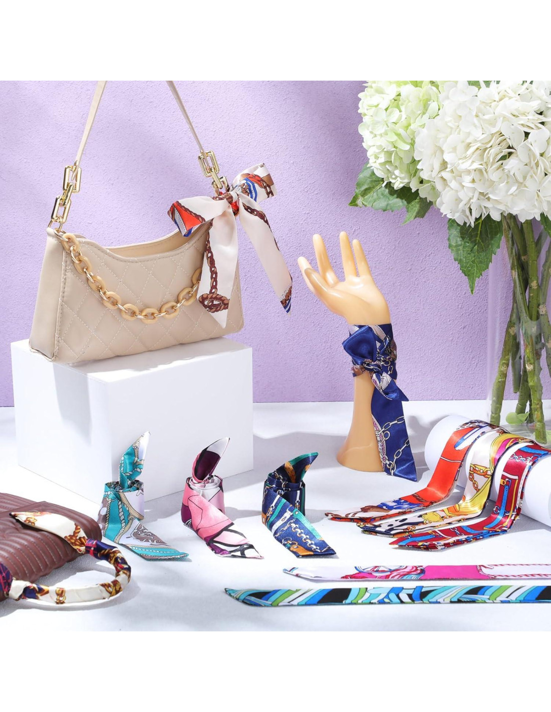 - Hermoso y práctico: el pañuelo para bolso es de aproximadamente 85 x 4 cm (33.5 x 1.6 pulgadas), largo en longitud, no solo se puede aplicar como un pañuelo para el cuello para calidez o adición de ropa, sino también como una diadema, o como un artículo decorativo para bolsos, mochilas, sombreros, maletas, carteras, etc.