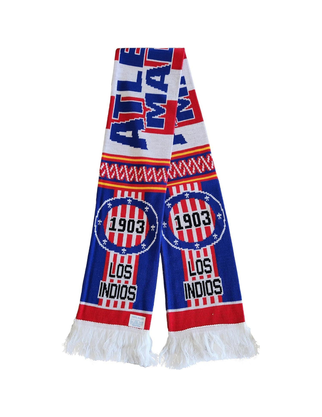 - Bufanda de tejido acrílico suave y cálido en los colores del equipo Atletico en rojo con ribete azul + blanco