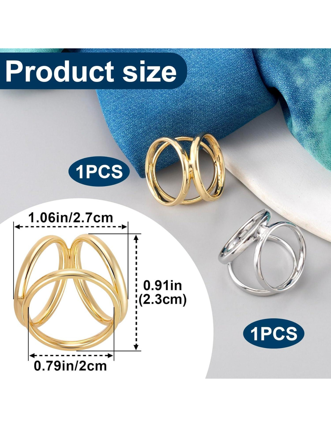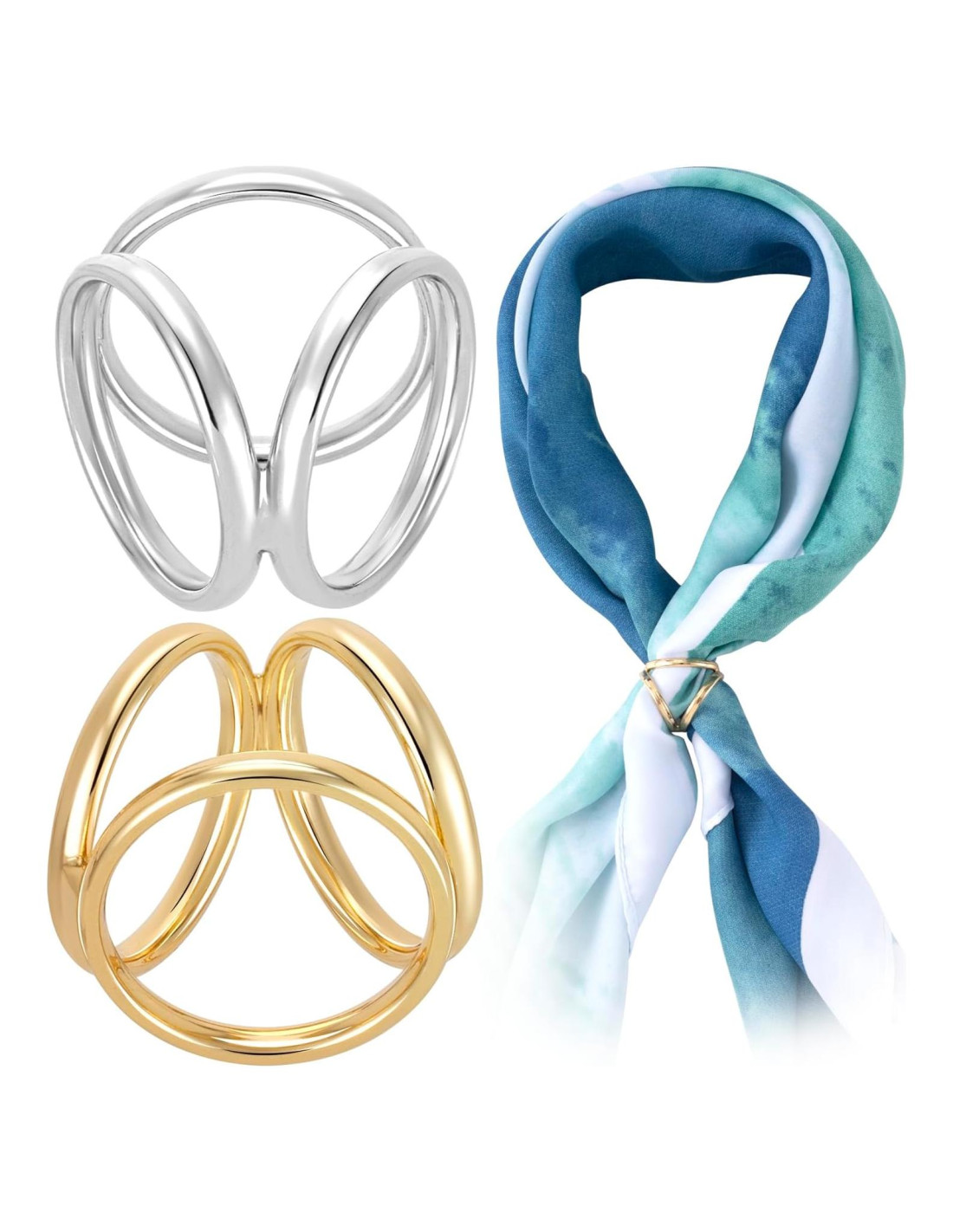 - Paquete Incluido: Recibirás 2 piezas de clips de anillo de bufanda de 3 anillos en oro y plata. Tamaño es 1.06x0.91 pulgadas (2.7x2.3 cm)
