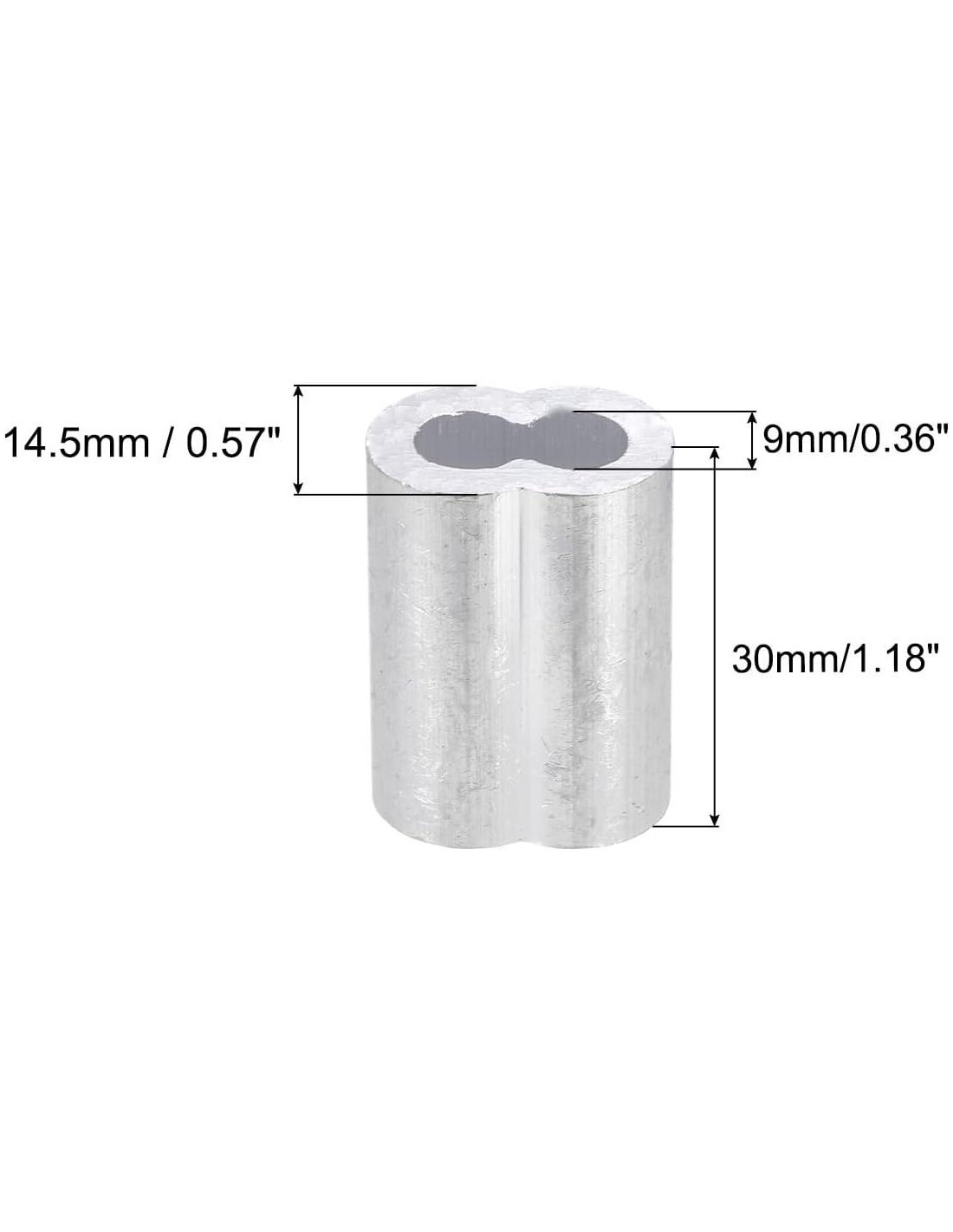 - Material: Aluminio; Adecuado para Diámetro de Cable: 5/16"/ 8mm; Tamaño: 30x14.5mm / 1.18x0.57 pulgadas (H*W); Grosor: 3mm / 0.12 pulgadas; Lista de Empaque: 10 x Manguito de Bujes de Aluminio