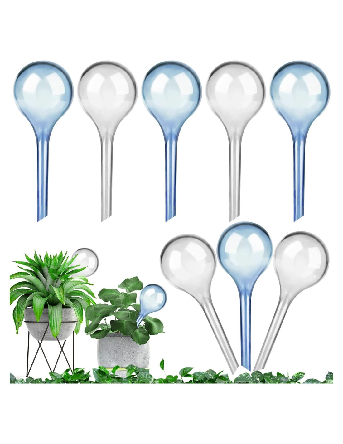 Bulbos de riego para plantas de 8 piezas, tamaño S de 5cm (80ml) Riego automático de plantas, sistema de autorriego para bulbos de riego de plantas de interior y exterior, globos de autorriego verdes y blancos