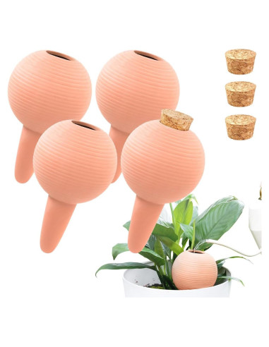 - Juego de 4: vienen en un juego de 4 picos en forma redonda y 4 tapones de corcho, satisfaciendo fácilmente las necesidades de todas tus plantas. El juego de 4 es perfecto para aquellos que tienen múltiples plantas o quieren usarlos en diferentes áreas de su jardín.
