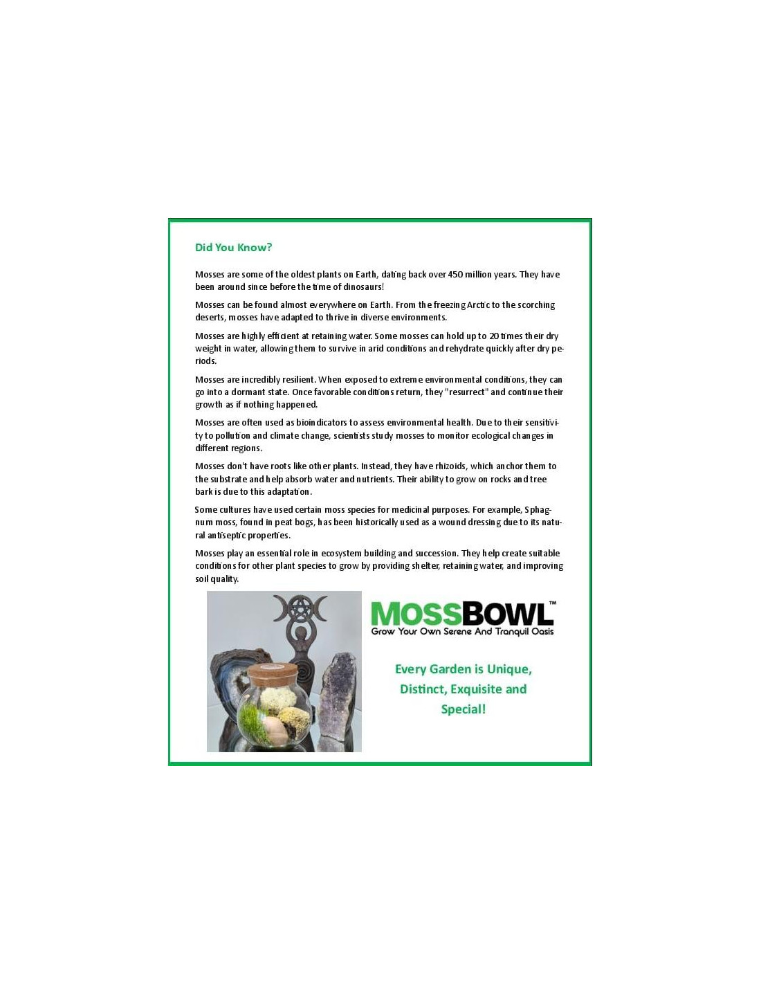 - Educativo y divertido: Ya sea para disfrute personal, decoración del hogar o como un regalo considerado, este kit de terrario de musgo DIY es ideal para amantes de las plantas, niños y adultos. Aprende sobre la resiliencia del musgo, la adaptación y la importancia ecológica mientras creas tu propio biodomo.