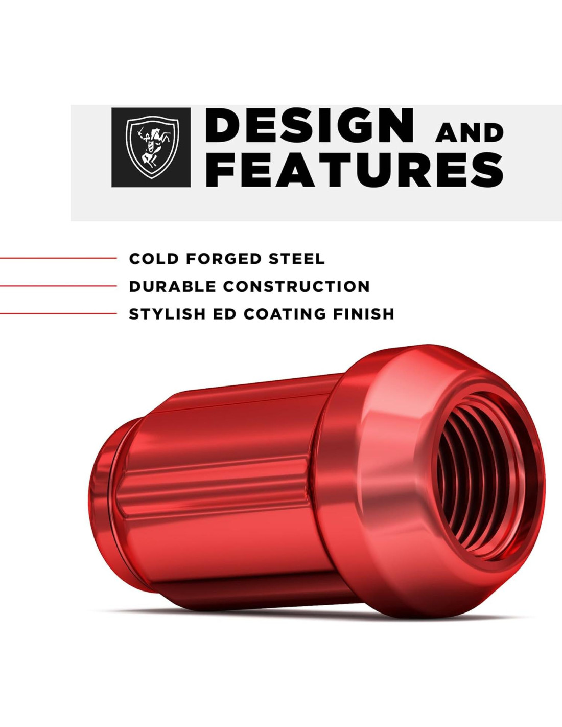 - Características: Acero al carbono forjado en frío y probado según estándares de la industria. Construcción duradera con acabado en neo cromo estilizado. Utiliza adaptador de llave de 6 espinas para una instalación rápida y segura