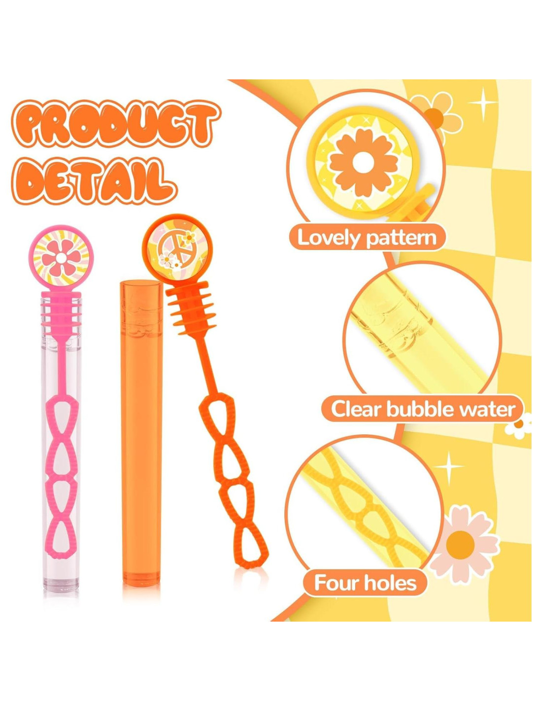- Suministros de Fiesta para Múltiples Aplicaciones: Nuestros favoritos de fiesta de burbujas son versátiles para fiestas psicodélicas, fiestas hippies boho de los 70, fiestas de margaritas, fiestas en la piscina, baby showers, decoraciones de cumpleaños de vibra de 1 y 5, bodas, etc. El juguete de varita de burbujas también es un gran regalo para niños pequeños, niños y niñas, para premios en el aula, sorpresas de piñata, sorpresas de calcetines navideños.