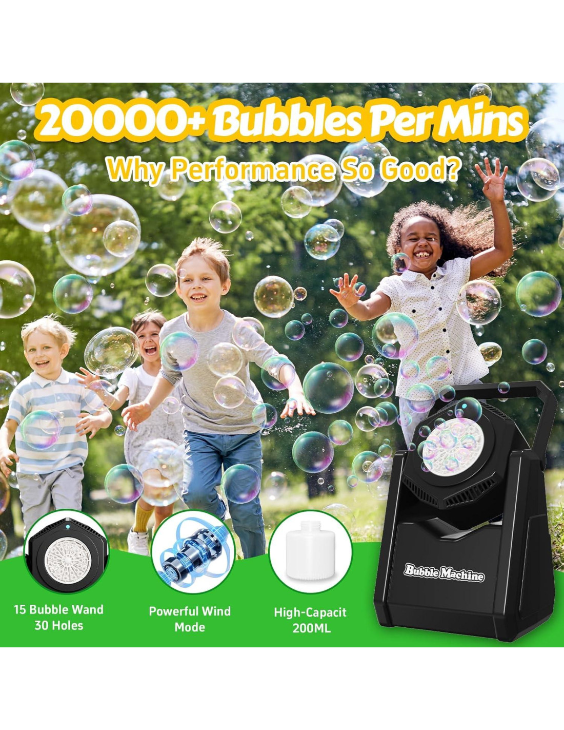- Máquina de Burbujas Rotativa genera 20000+ Burbujas por Minuto: ¡Haz que cada celebración sea memorable con esta Máquina de Burbujas Automática! Puede generar más de 20000 burbujas por minuto, creando una exhibición de burbujas hipnotizante. (Requiere 4 baterías AA, baterías no incluidas)