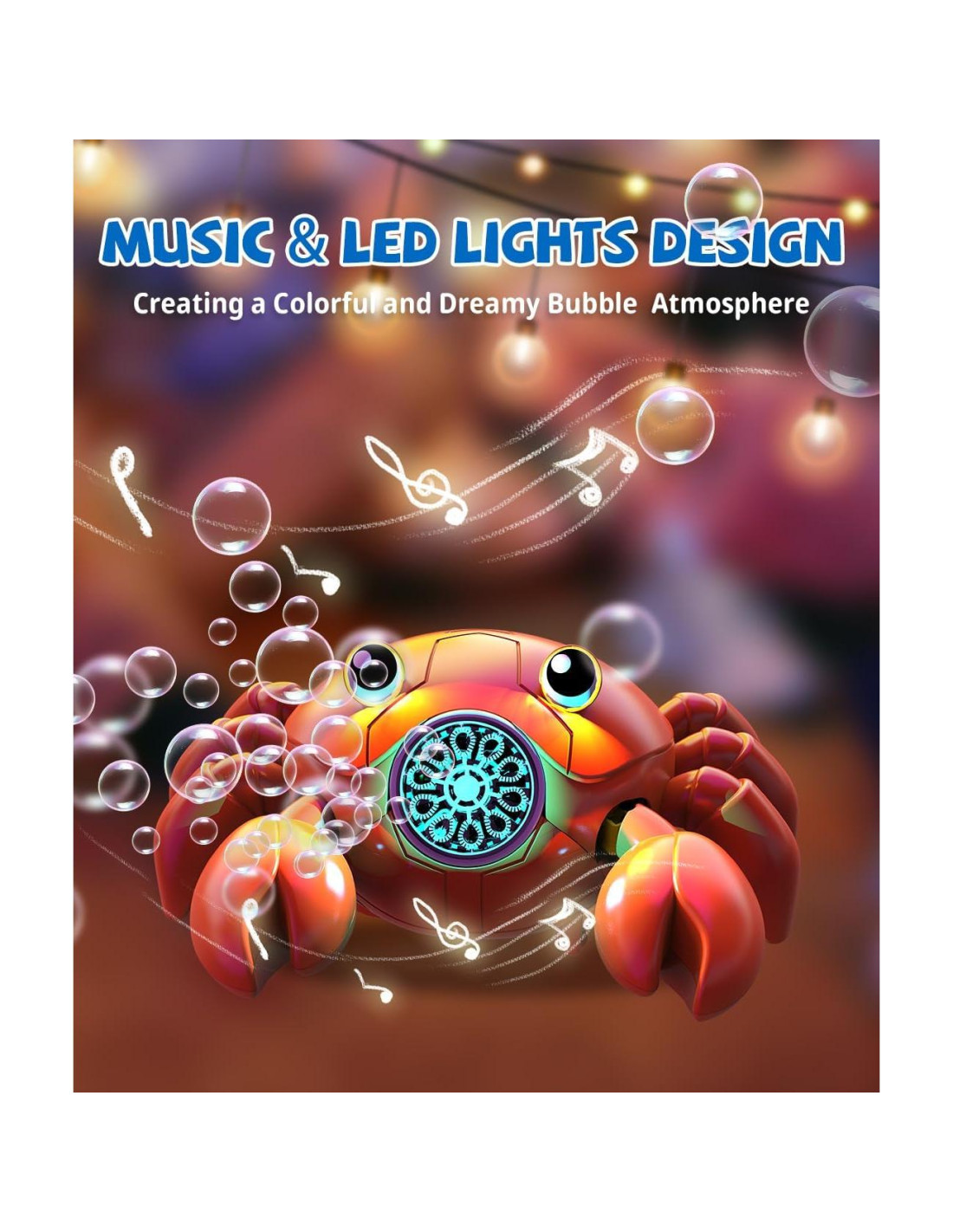 - LED Coloridos Mejoran la Magia de las Burbujas - ¡Mira cómo brillan las burbujas! Las luces LED integradas en los ojos y boquillas del cangrejo proyectan tonos de arcoíris en cada burbuja, creando visuales hipnotizantes. Ideal para jugar por la noche o eventos temáticos, este generador de burbujas también funciona como un juguete luminoso