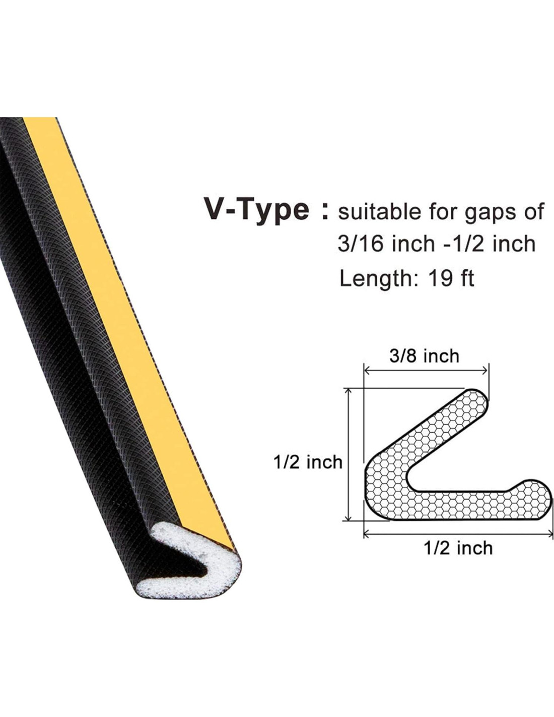 - Paquete de Sello de Clima en Forma de V: Incluye 1 rollo de burlete, 1/2 Pulgada de Ancho X 5.79 Metros de Largo, adecuado para espacios de 3/16 pulgadas a 1/2 pulgada (4.5mm a 12.7mm). Por favor mide el espacio antes de comprar y limpia la superficie antes de aplicar.
