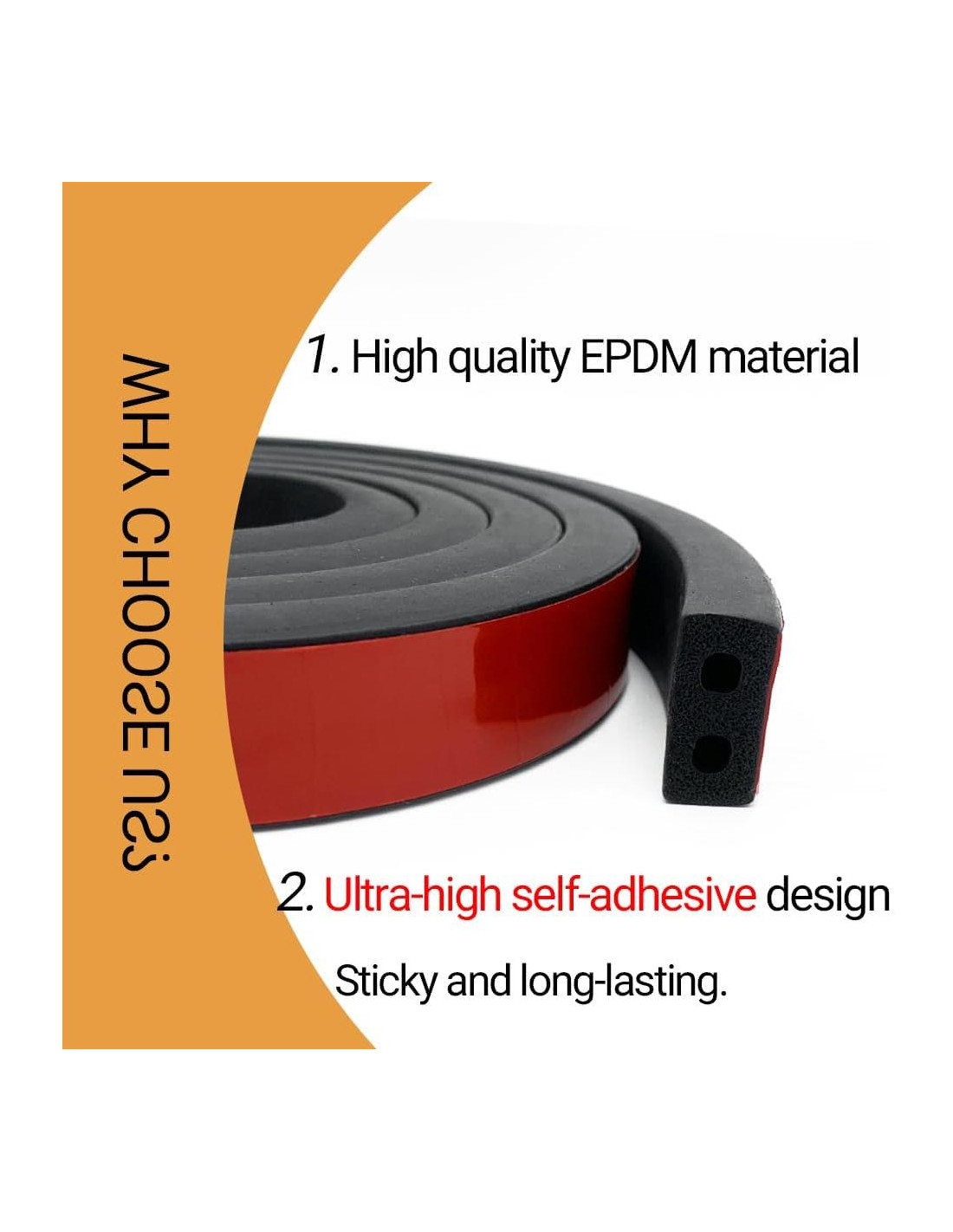 - Diseño: La junta de goma de espuma adopta un diseño autoadhesivo, que es más simple de usar y conveniente para aplicar en diferentes escenarios. (El adhesivo es muy pegajoso y duradero).