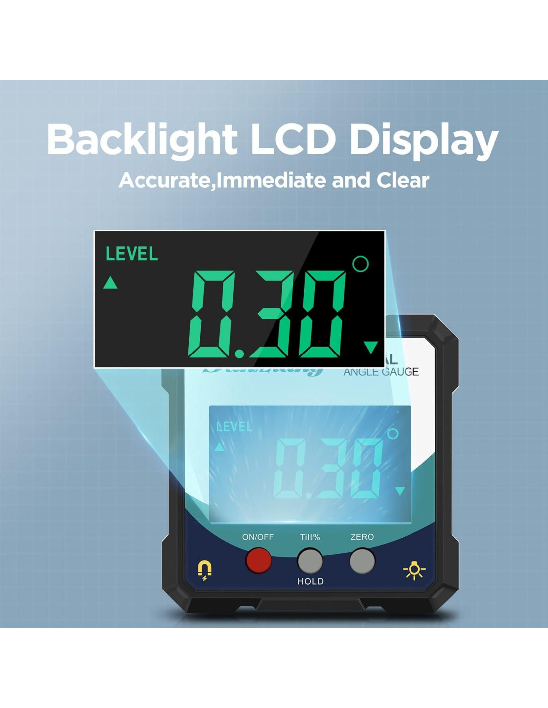 - [Pantalla LCD retroiluminada] La pantalla de alto contraste mejora la visibilidad en entornos de trabajo poco iluminados. La pantalla LCD de 1.5 pulgadas puede proporcionarte mediciones precisas, inmediatas y claras. Además, la pantalla se invertirá automáticamente cuando la herramienta esté al revés. Además, este nivel digital se apagará automáticamente después de 3 minutos sin operación para ahorrar batería.
