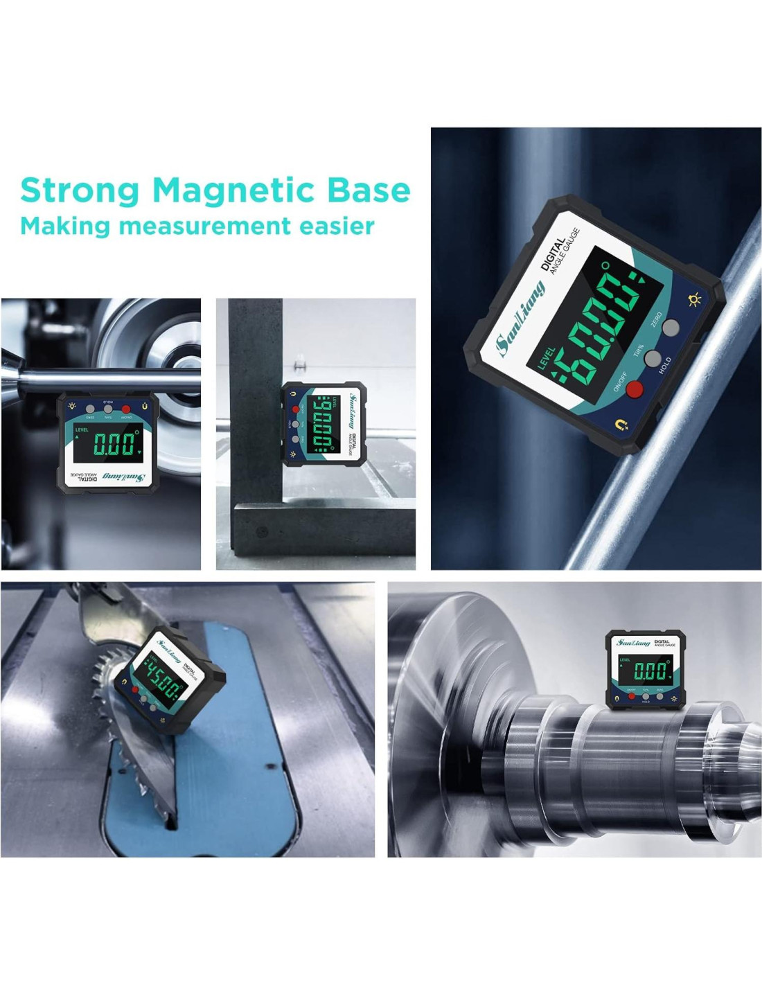 - [Fuerte imán] La base magnética fuerte hace que varias mediciones adhesivas sean simples y precisas. El buscador de ángulo digital se adhiere a conductos, tuberías, hojas de sierra, ventilaciones, ductos y otras superficies ferromagnéticas.