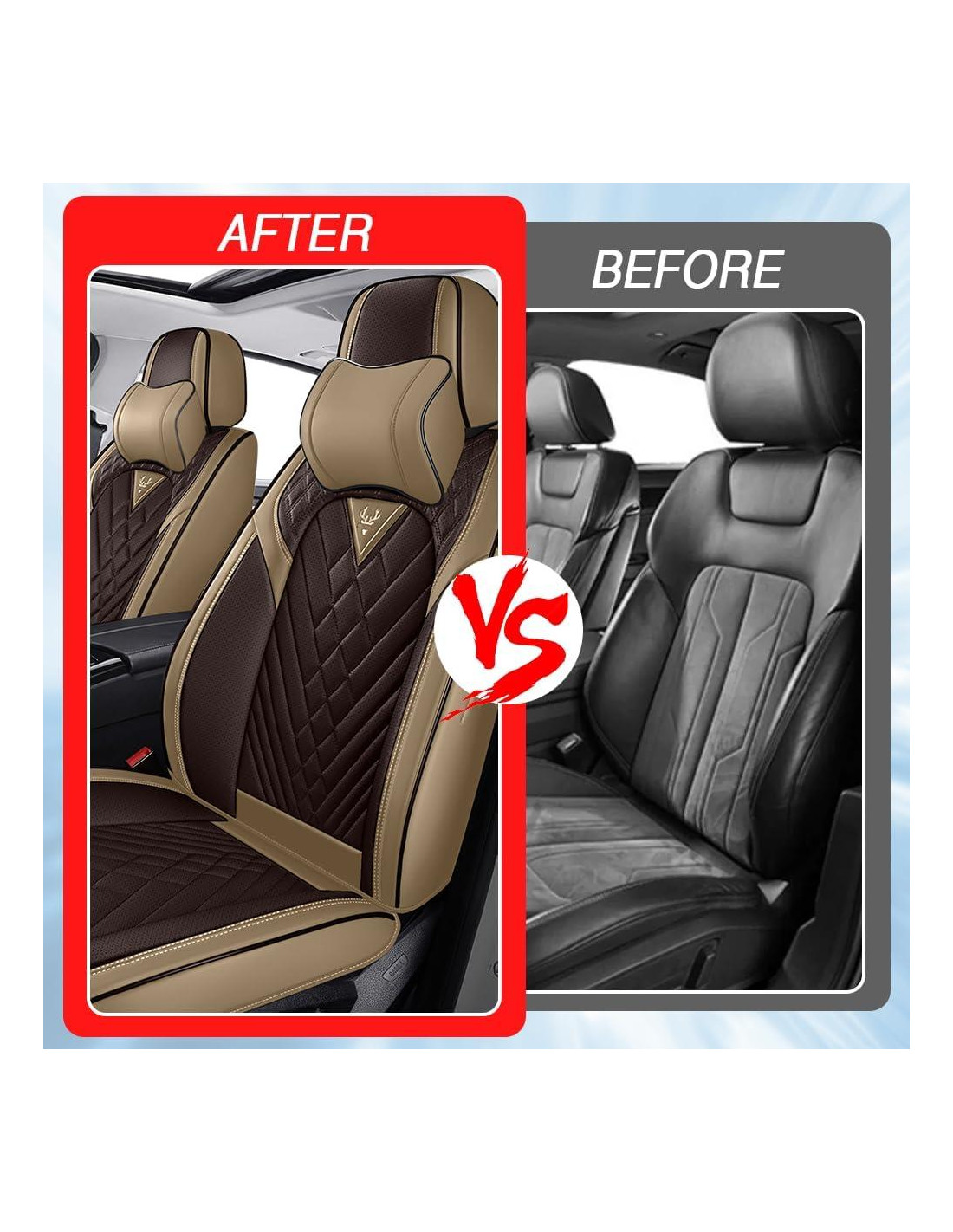 - [Fácil de Instalar] : Las fundas de asiento modernas vienen con manuales de usuario claros, guías en video y ganchos/abrazaderas de instalación rápida, lo que le permite manejar fácilmente los problemas de instalación.