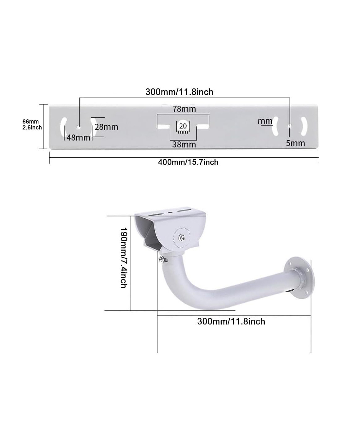 - Fácil de instalar y ajustar la dirección de la cámara. El tamaño estándar es compatible con la mayoría de las cámaras de vigilancia. Es adecuado para montaje en interior, exterior, techo, pared y techo.