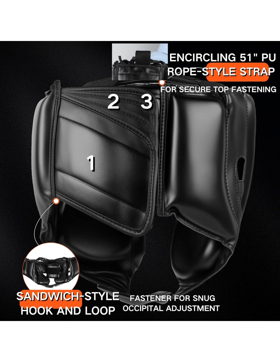 - [Correa para la cabeza antideslizante] La parte superior de la cabeza está hecha de cuerda de PU resistente al desgaste con una función antideslizante innovadora. El alto coeficiente de fricción mantiene la parte superior de la cabeza firmemente en su lugar. Es fácil de ajustar por ti mismo o con la ayuda de otros, y la cuerda no se deslizará ni perderá su poder de fijación incluso si sudas. Es seguro incluso durante entrenamientos intensos de boxeo y kickboxing.