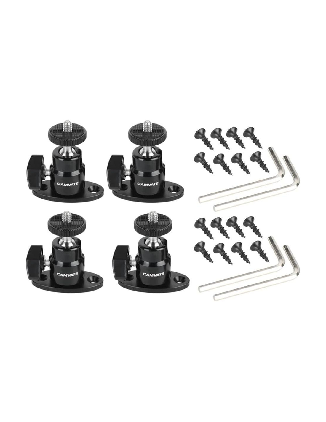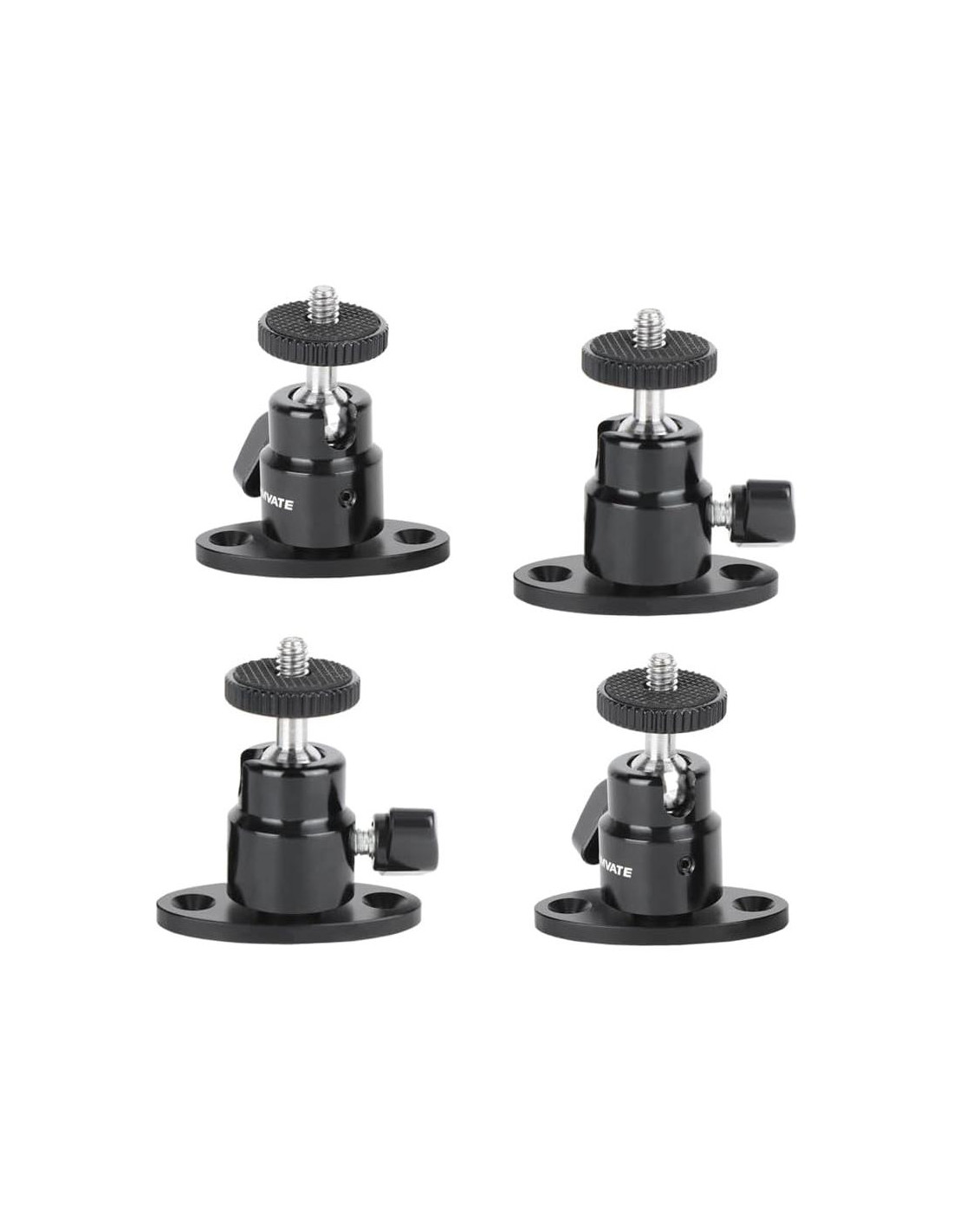 Consiste en un cabezal esférico mini con tornillo 1/4"-20 y una base ovalada con 2 agujeros de ajuste atornillados en su parte inferior, lo que deja puntos de montaje para accesorios o dispositivos en ambos extremos. El montaje del cabezal esférico mini está hecho de aleación de aluminio para un peso ligero y durabilidad, y puede adjuntar un monitor / sistema de vigilancia con agujero de montaje 1/4"-20 a la mesa, podio, pared y techo. Viene con 2 agujeros de ajuste en la base que permiten un ajuste firme con tornillos cruzados. También puedes ajustar el ángulo como desees con un diseño de rotación de 360 grados. Peso Neto: 79.2 g Paquete Incluido: 4 * Cabezal Esférico Mini Macho 1/4"-20 con Montaje en Techo 4 * Llave Hexagonal 16 * Tornillo para Madera